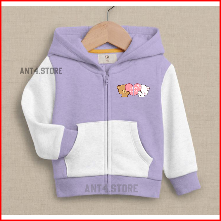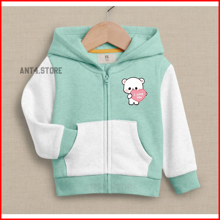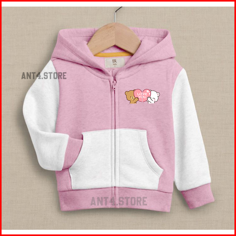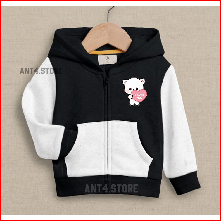 Jaket Anak Perempuan Panda Love U Zipper Anak Laki-laki Unisex Umur 2-12tahun
