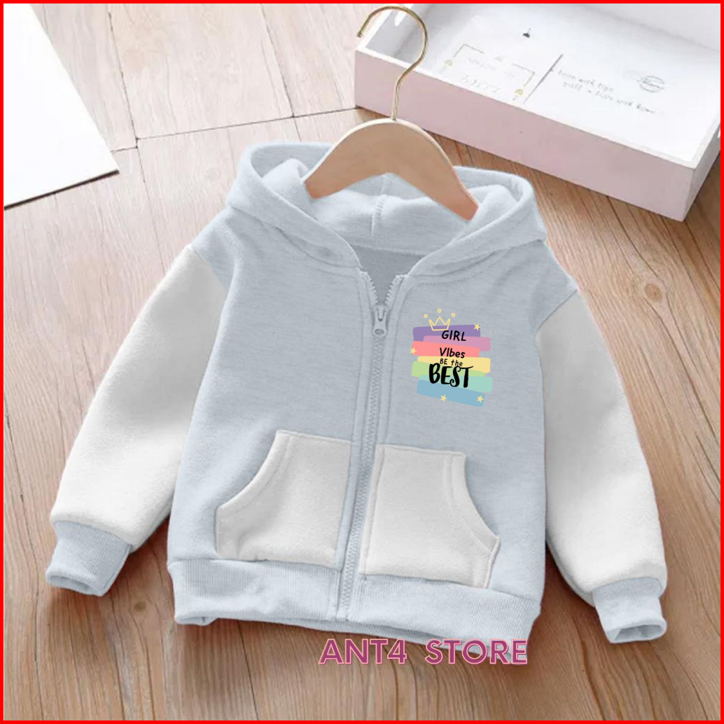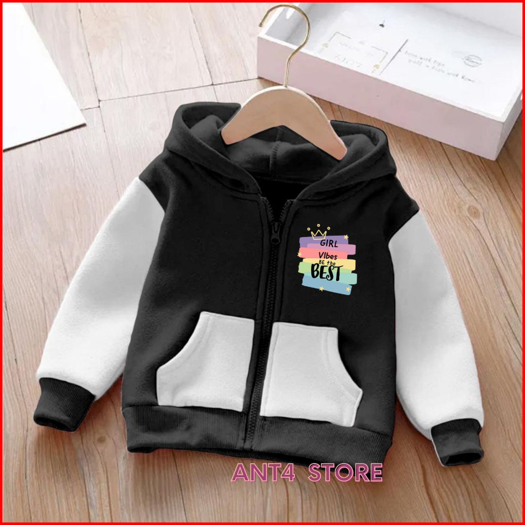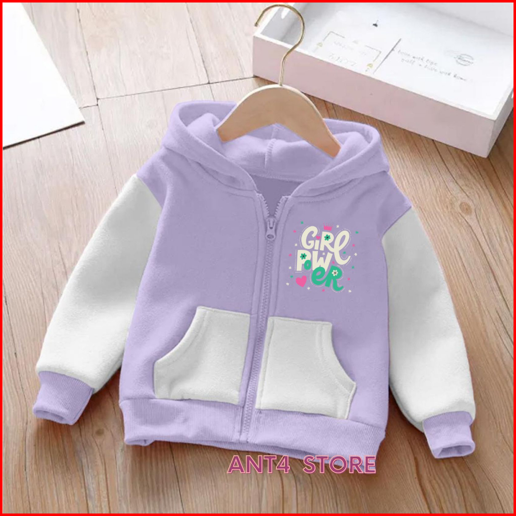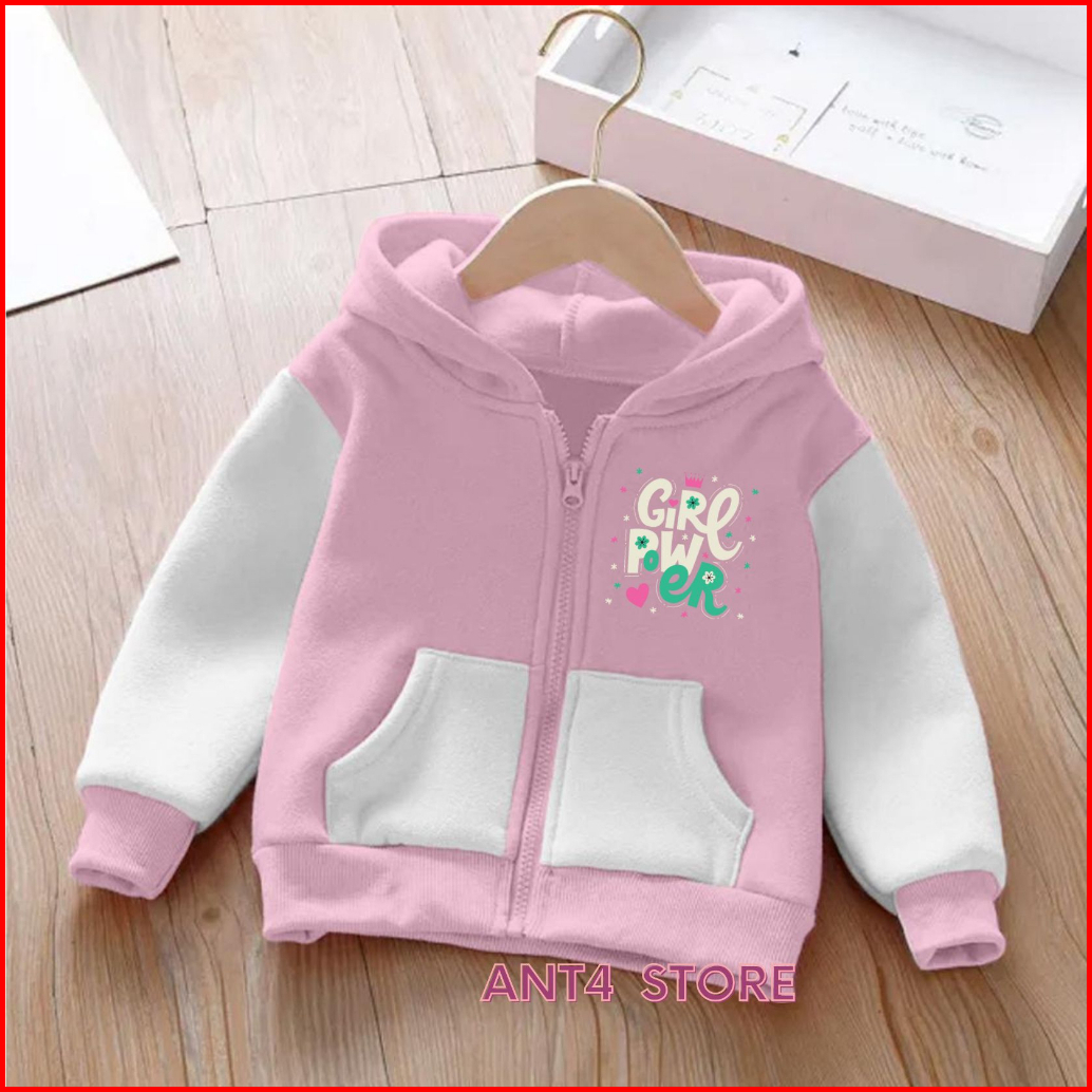 Jaket Resleting Girl Power Anak Perempuan Zipper Anak Laki-laki Unisex Umur 2-12tahun