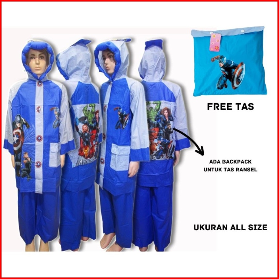 Jas Hujan Anak Karakter Jaket Dan Celana Backpack