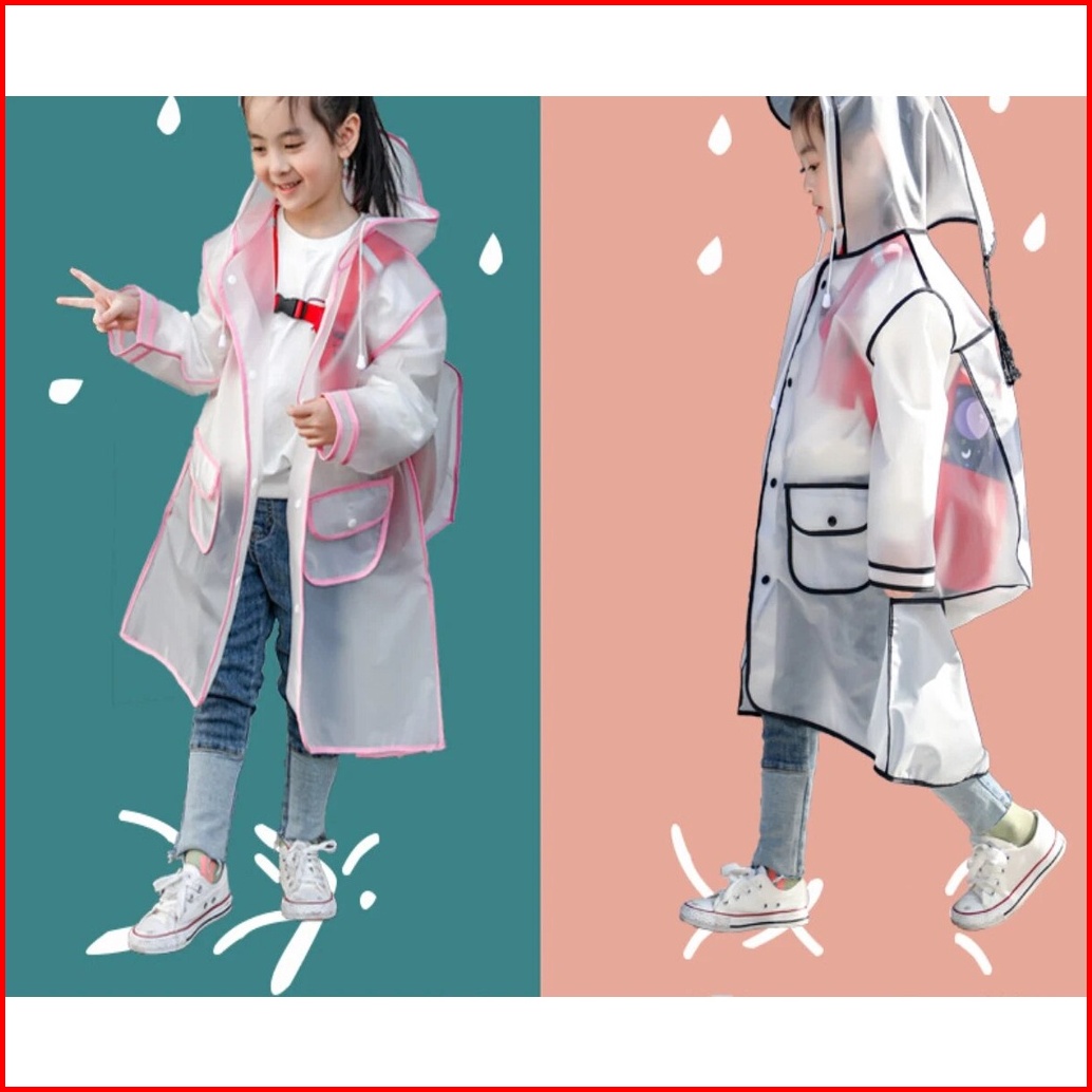 Kiara Jas Hujan Transparan Anak Mantel Tahan Air Anak Laki-laki Perempuan Tembus Pandang Pakaian Hujan Bayi Hewan Kartun