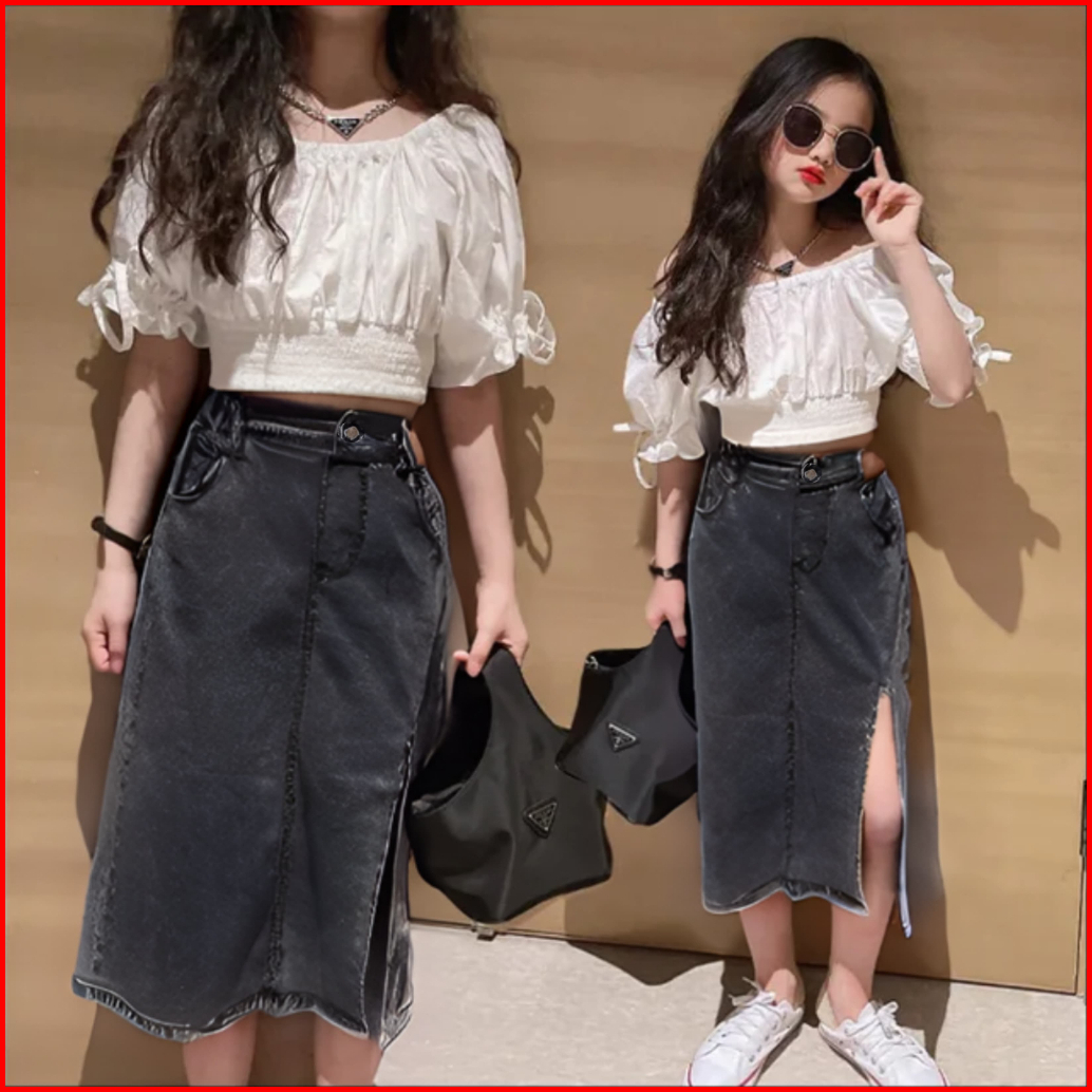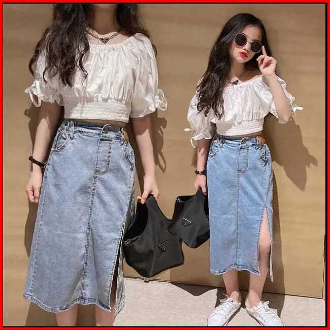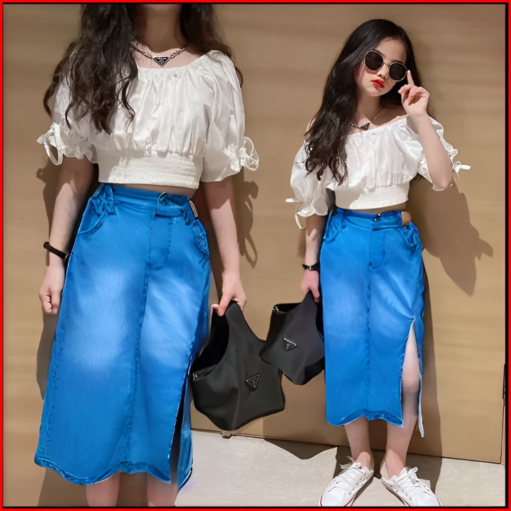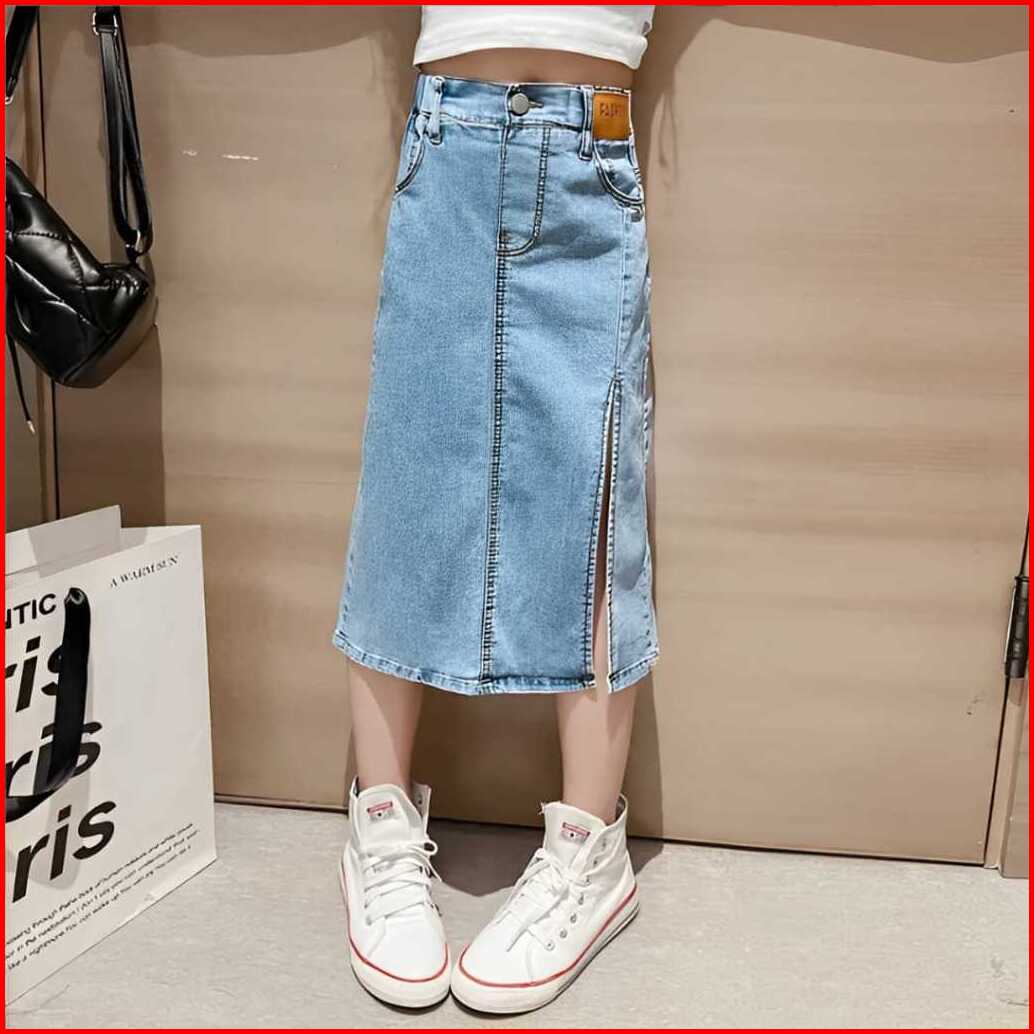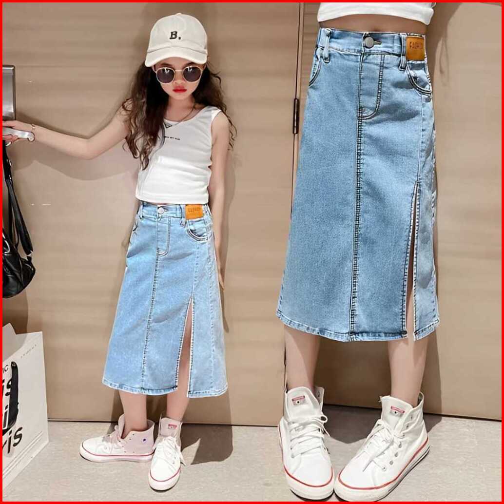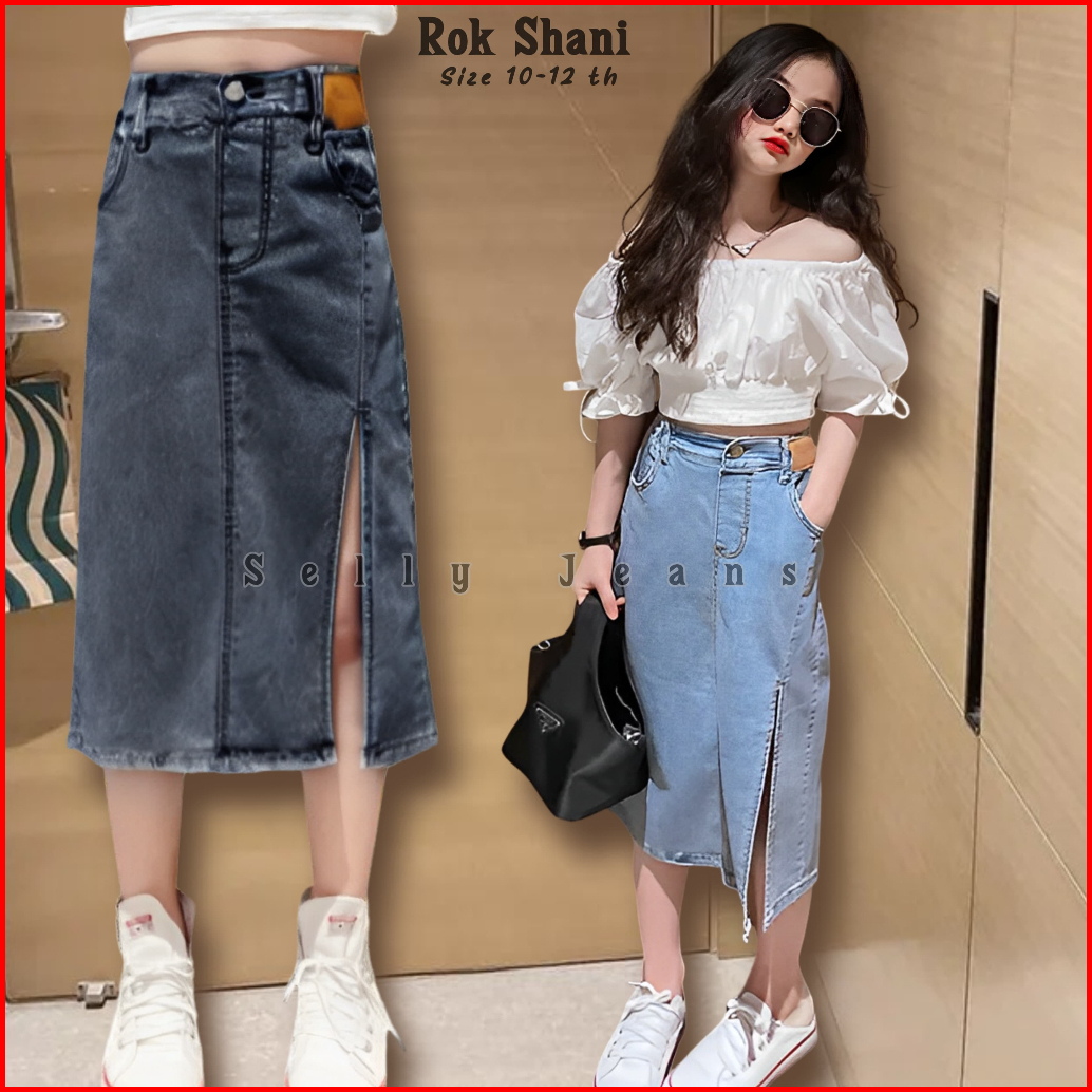 Rok Jeans Anak Perempuan Model Midi Skirt 7 8 Untuk Usia 9 - 12 Tahun - Rok Shani Anak Belah Samping