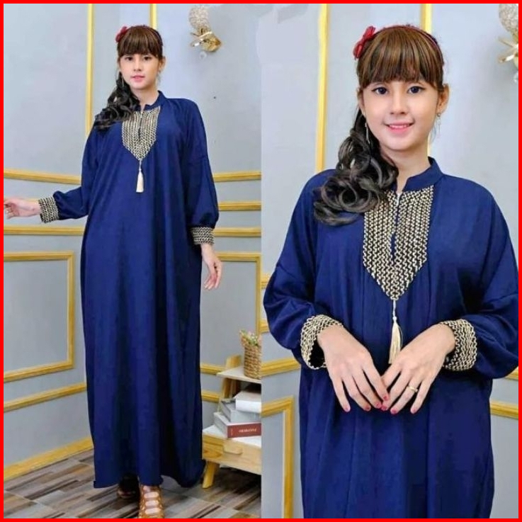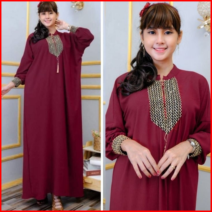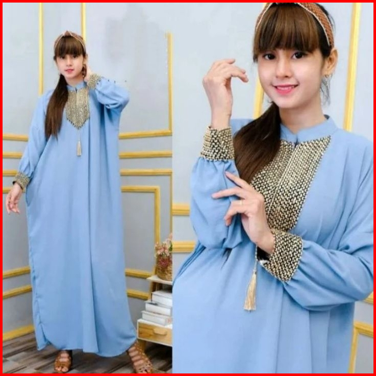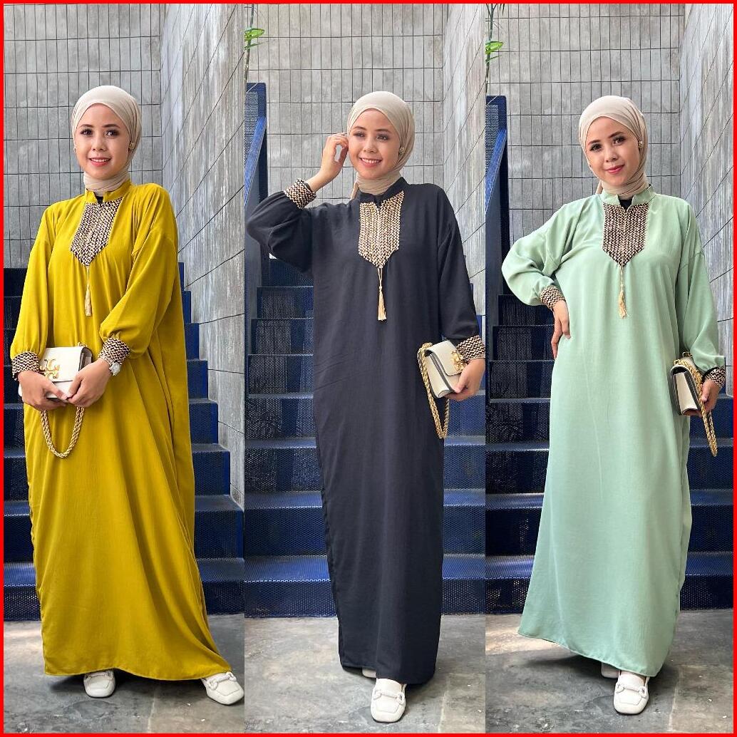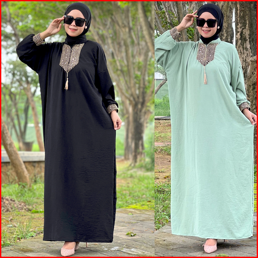 Gamis Sultan Renda Crinkle Airflow Premium Dress Kaftan Arab Polos Simple Busui Friendly Hitam
