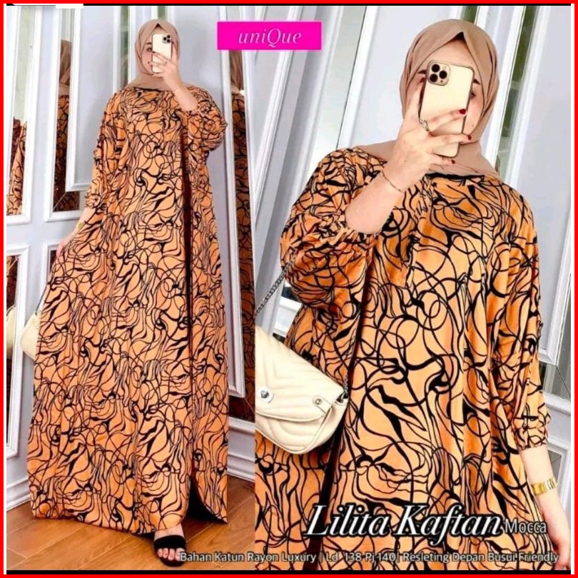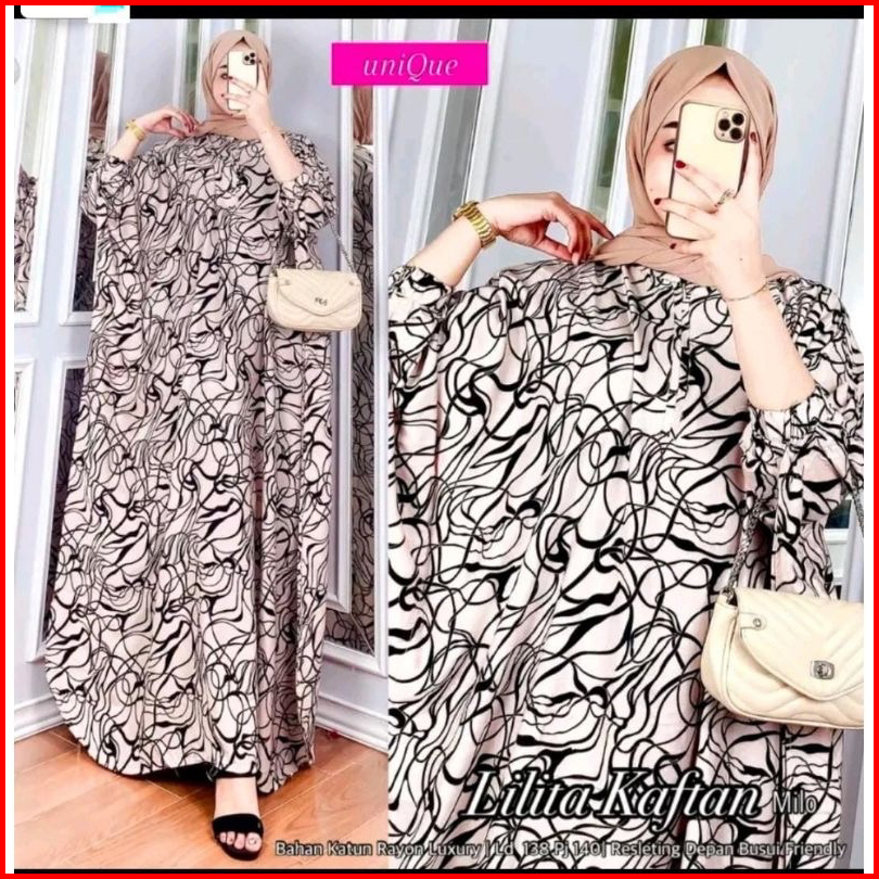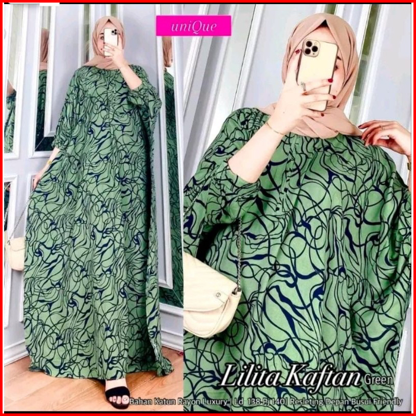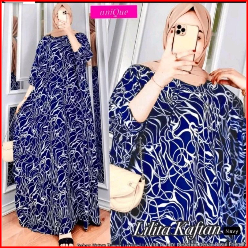 Terbaru Gamis Kaftan Lilita Bahan Rayon Grade Adem Halus Busui Frendly