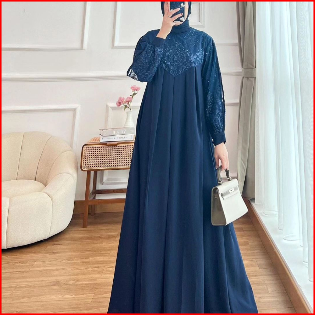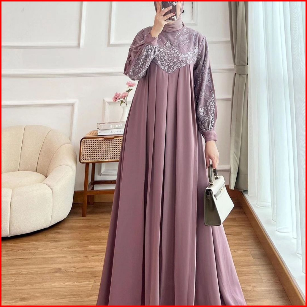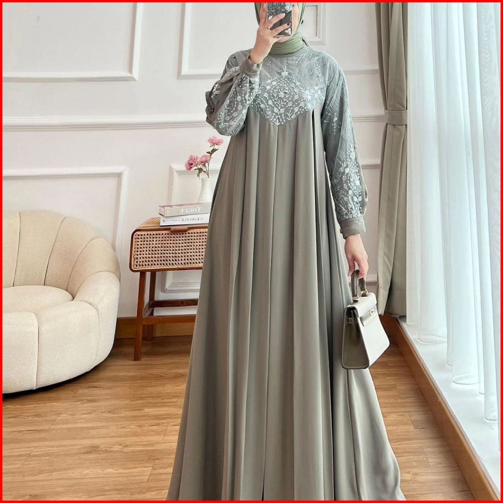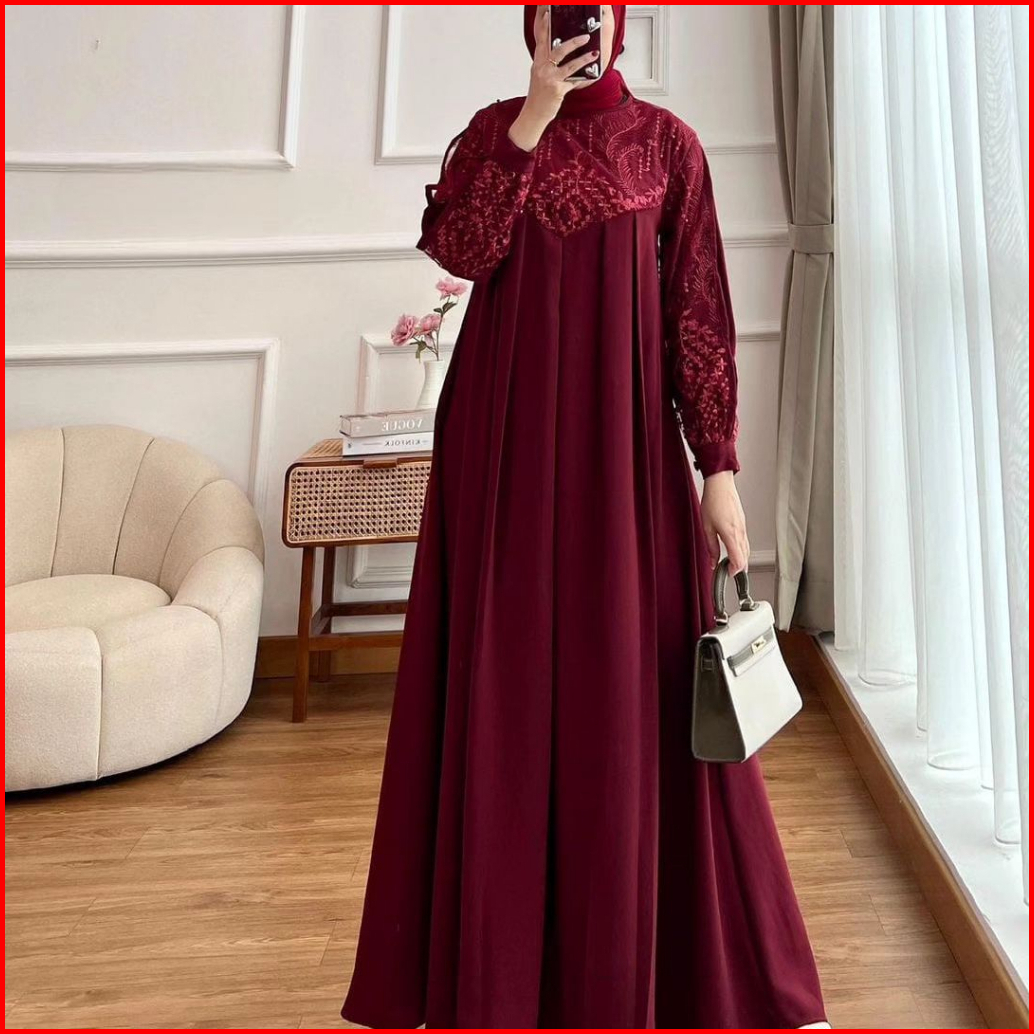 Dress Maxi Irena Cringkel Airflow Mix Brukat Payet Sleting Belakang All Size Warna Maroon Mint Navy Dusty Plum Dress Bro