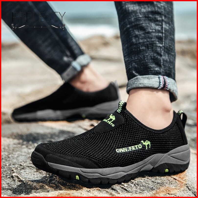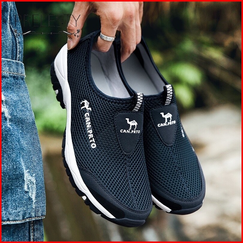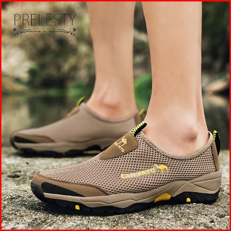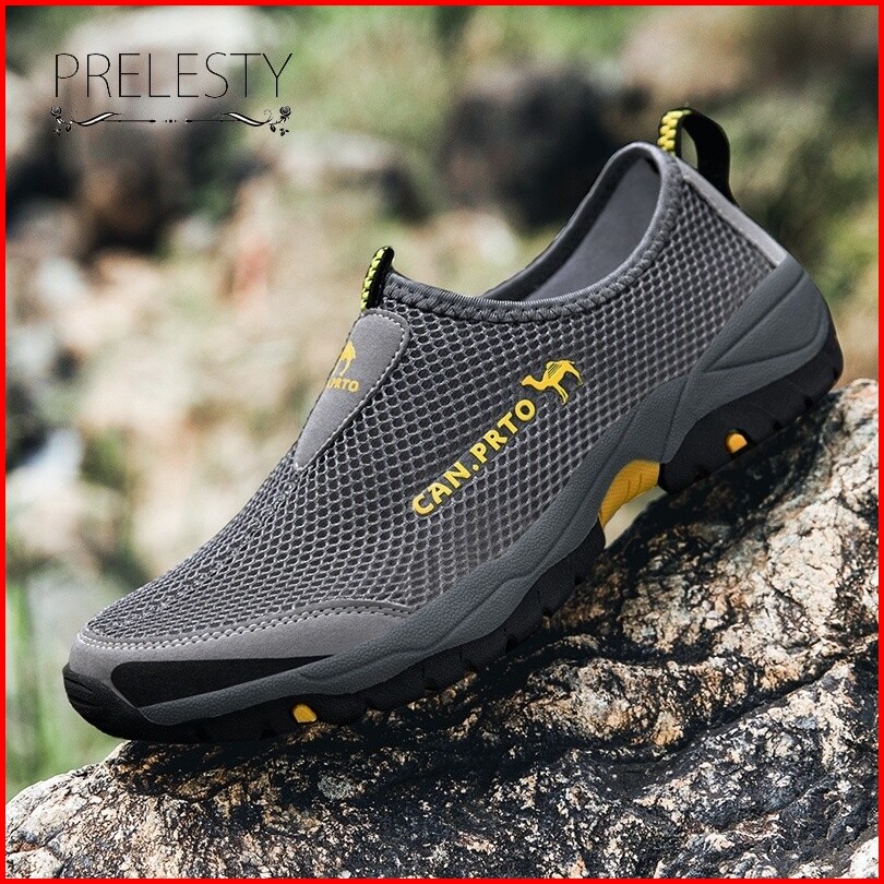 4 Warna Sepatu Hiking Tanpa Tali Pria Casual Sepatu Slip On Gunung Outdoor Trekking Keren Sepatu Mendaki Anti Slip Touri