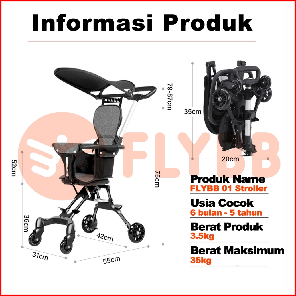 Tiibaby Stroller Baby Kereta Dorong Balita Lipat Magic Stroller Baby 2 Way Travel