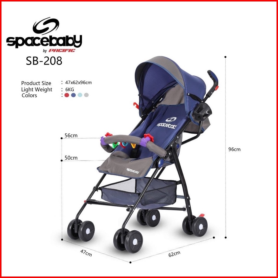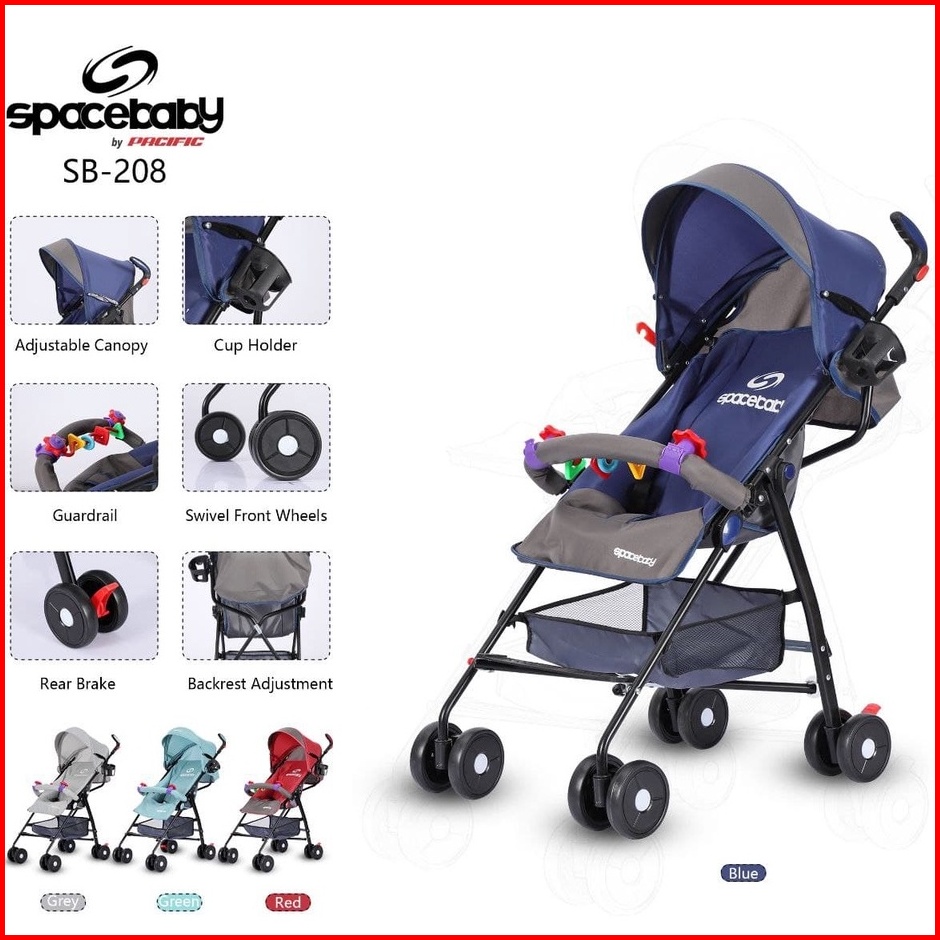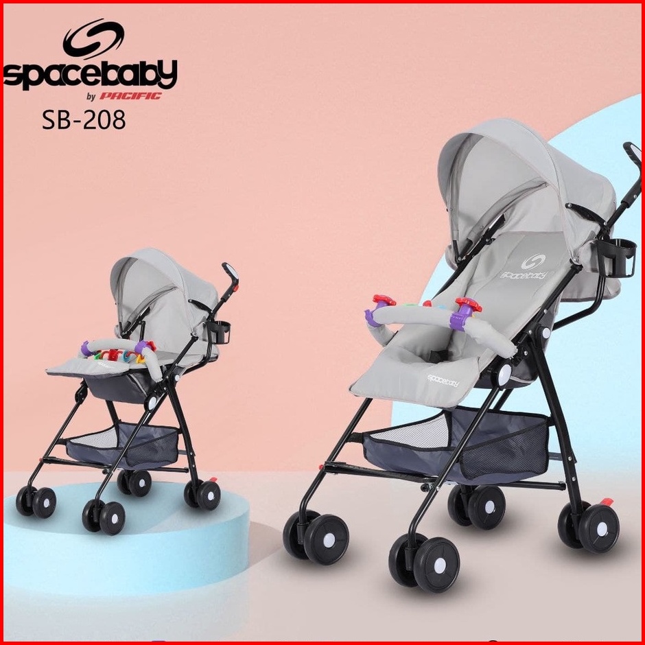 Spacebaby Sb208 Kereta Dorong Bayi Buggy Nb-3 Tahun Duduk Rebah Tidur Baby Stroller Lipat Payung