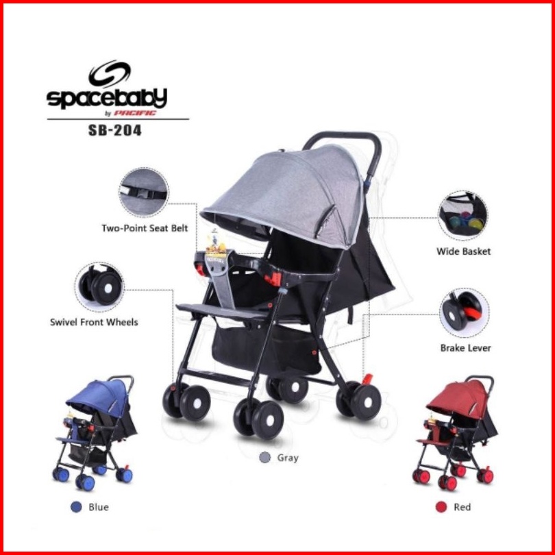 Kereta Dorong Bayi Spacebaby Sb 204 Sb 214 Sb 315 Stroller Baby New Born - 3 Tahun 3 Posisi Sandaran Quick - Fold
