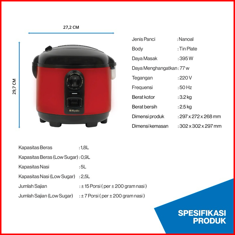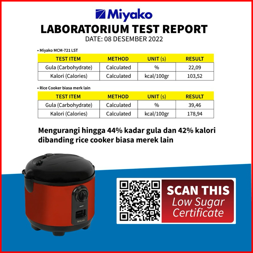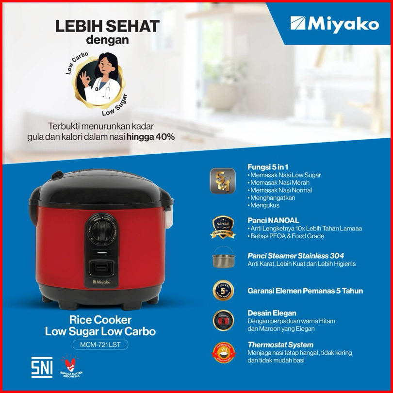 Magic Com Miyako Mcm 721 Lst Rice Cooker Magic Com Low Sugar Cargo Rendah Gula Anti Lengket