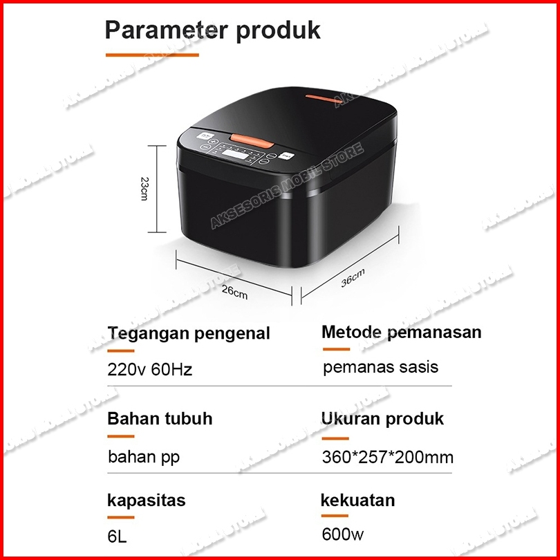 Penanak Nasi Digital Stainless 5-10 Orang Steel Anti Lengket Watt Rendah 5l Standar Eropa