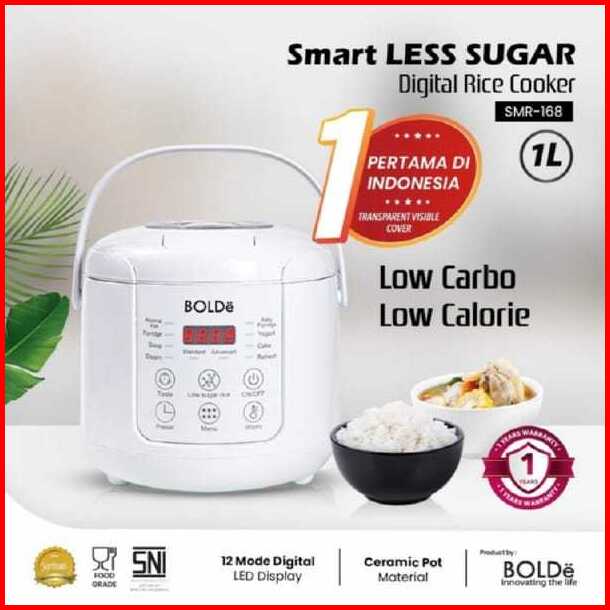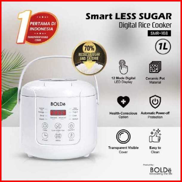 Rice Cooker Bolde Smart Less Sugar 1l Rendah Gula Digital Ceramic Sus304 12 Mode Masak Hemat Listrik