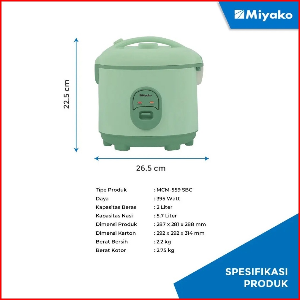 Magic Com Miyako Mcm 559 Sbc Mcm559 Sbc Rice Cooker Miyako 2 Liter