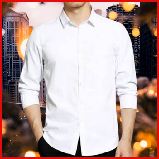 Kemeja Cowok Polos Lengan Panjang Hem Pria Kantor Hitam Navy Putih Maron
