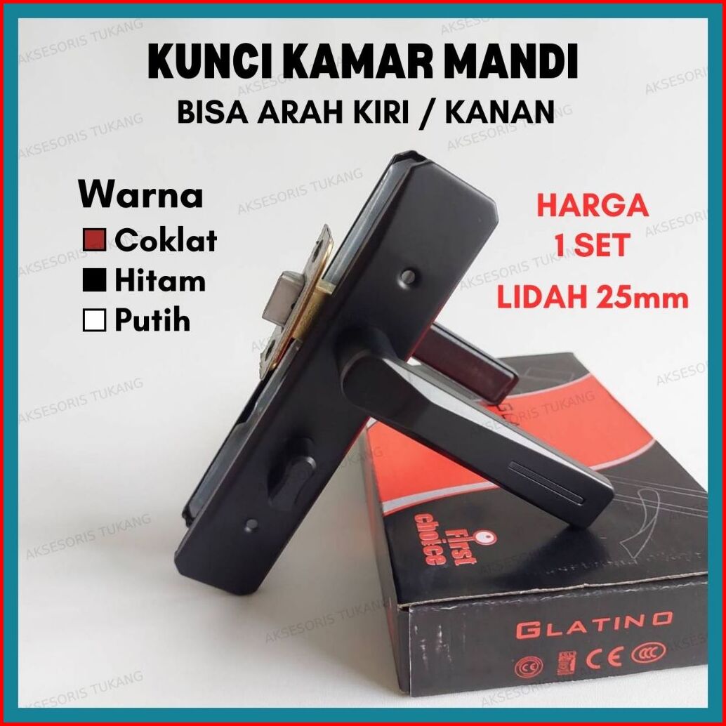 Kunci Kamar Mandi Model Handle Gagang Pintu Knob Toilet Warna Ukuran 25mm Glatino