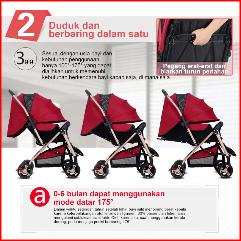 Gift Box Garansi 3 Tahun Stroller Babydoes Stroller Bayi Kereta Dorong Bayi Stroller Anak Merah Biru Pesimis Kelambu Gra