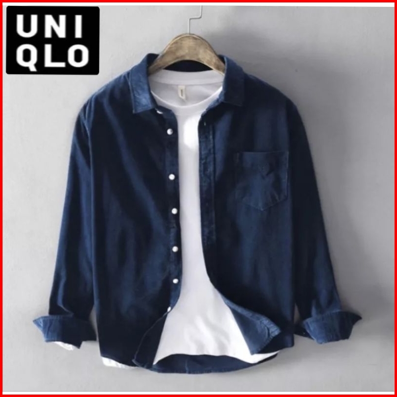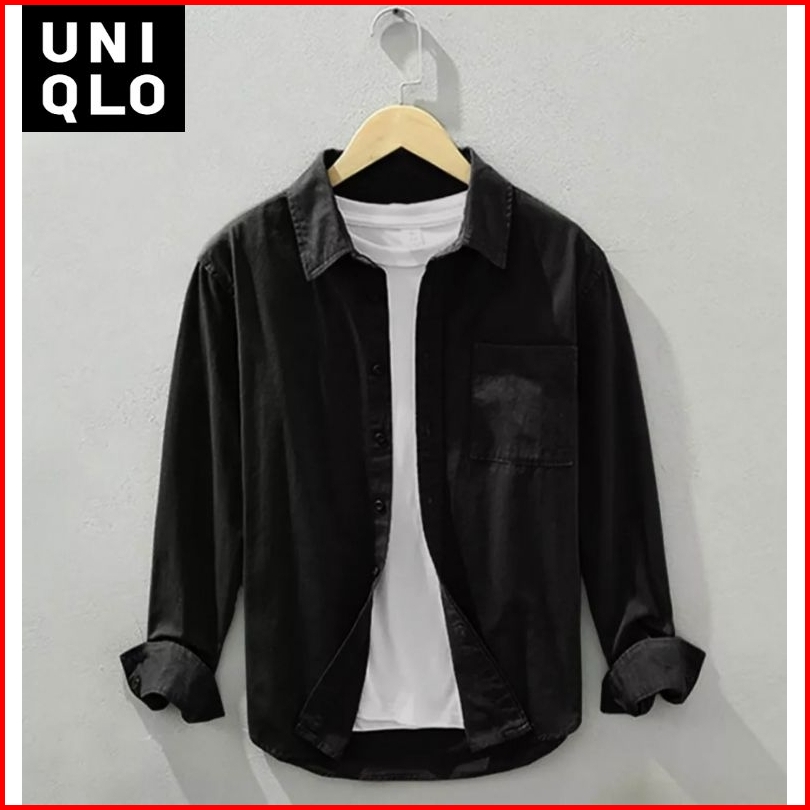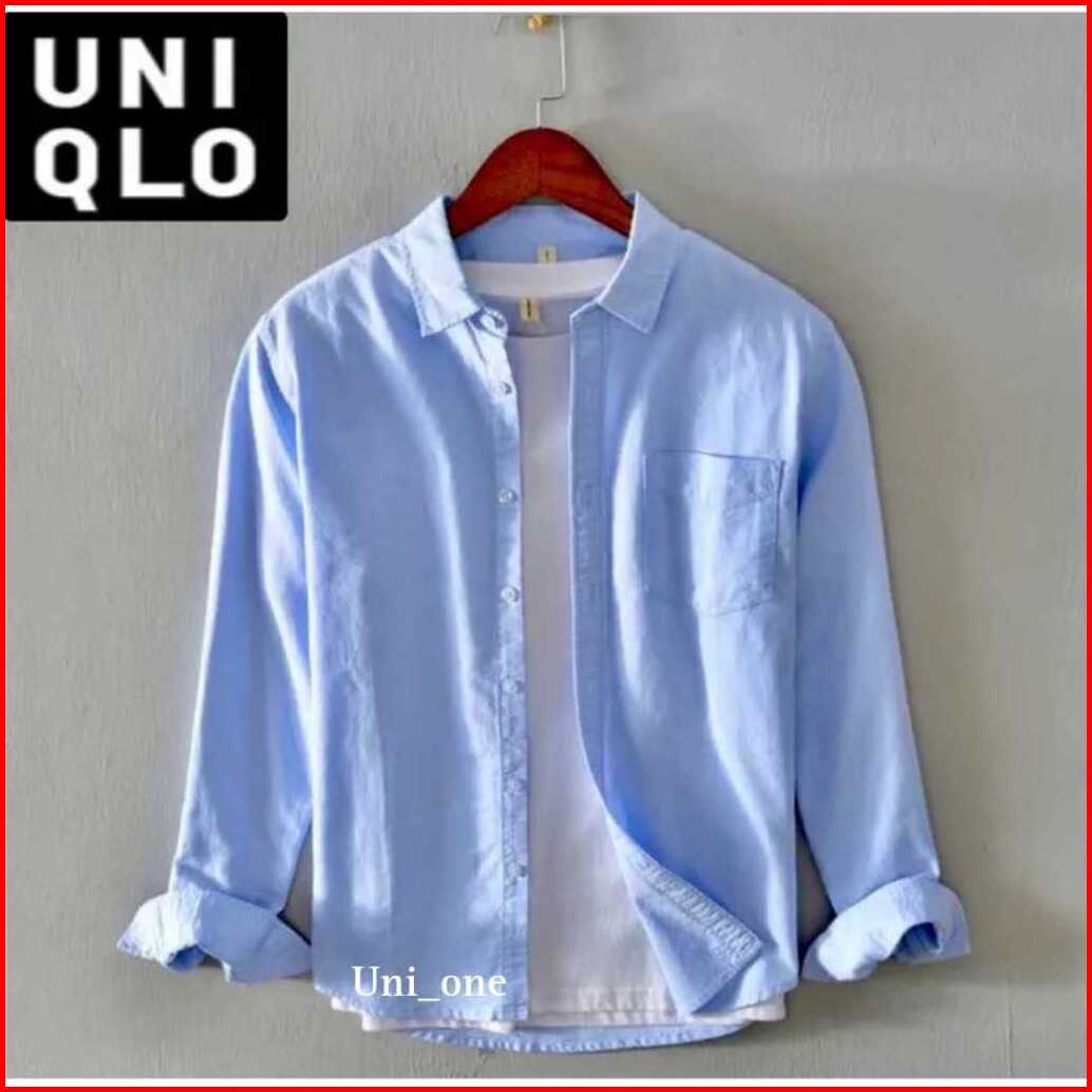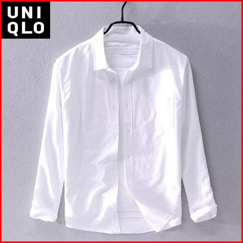 Promo Kemeja Putih Uniqlo Panjang Polos Casual Slim Fit