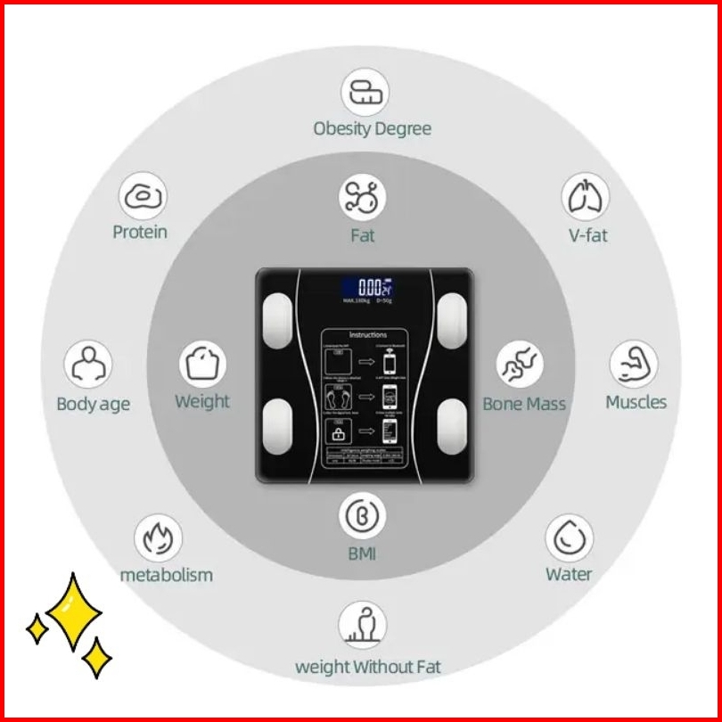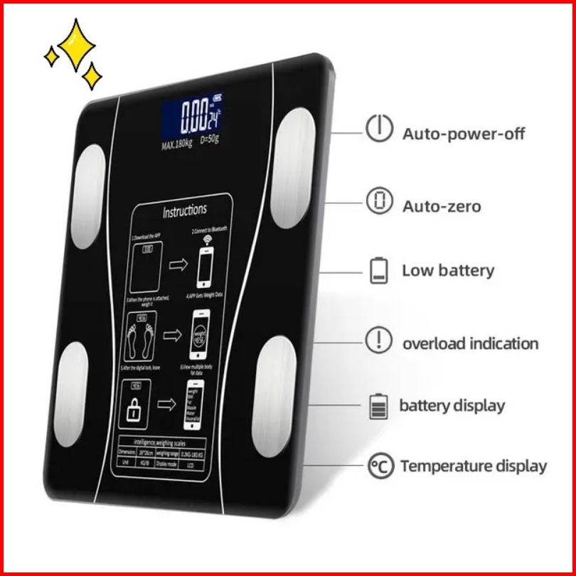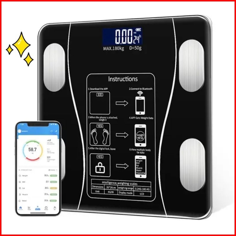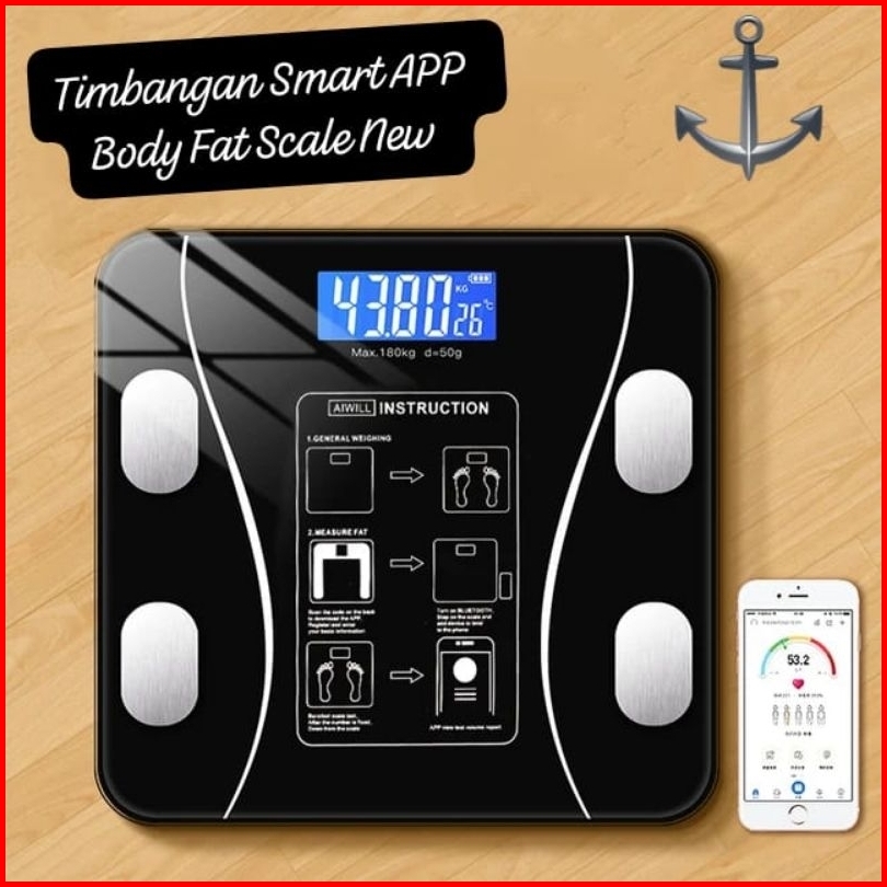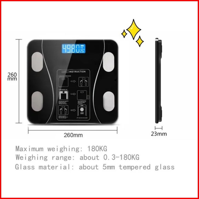 Timbangan Badan Digital Smart Body Scale180kg Bluetooth Tempered Glass