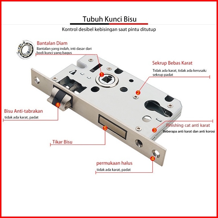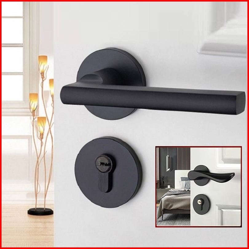 Gagang Pintu 1 Set Siap Pasangaluminium Kunci Gagang Pintu Senyap Gaya Eropa Handle Lock Door Model Lurus Bedroom Living