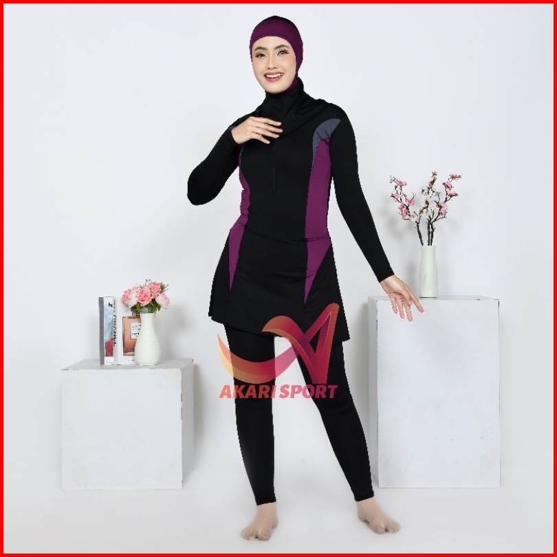 Baju Renang Dewasa Muslim Wanita Hijab Polos Spandek Premium
