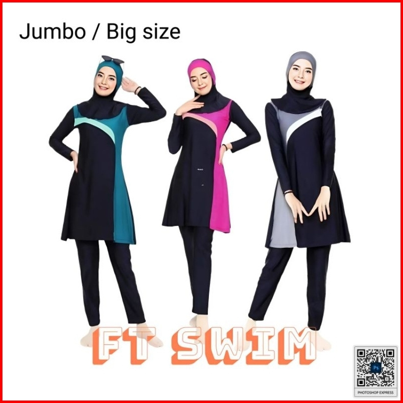 Jumbo Baju Renang Muslimah Dewasa Pakaian Renang Muslim Remaja Perempuan Wanita Cewek Swimsuit
