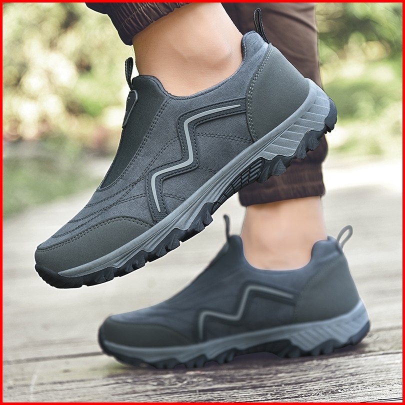 Import Sepatu Pria Santai Mendaki Gunung Outdoor Sepatu Hiking Pendek Touring Olahraga Tanpa Tali Slip On Casual Cowok D