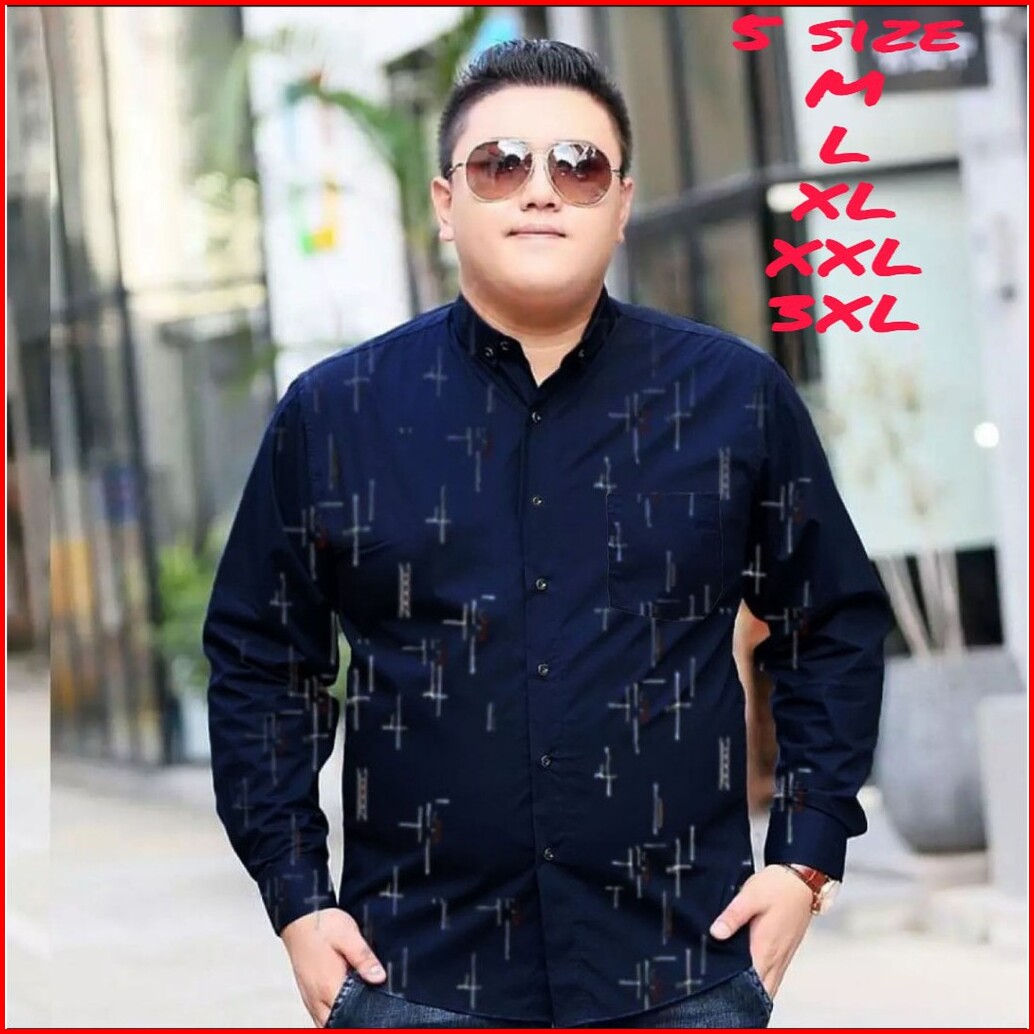Kemeja Motif Simple Keren Size L Sampai Xxxl Hem Pria Lengan Panjang Casual Oscar