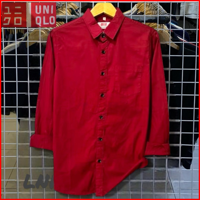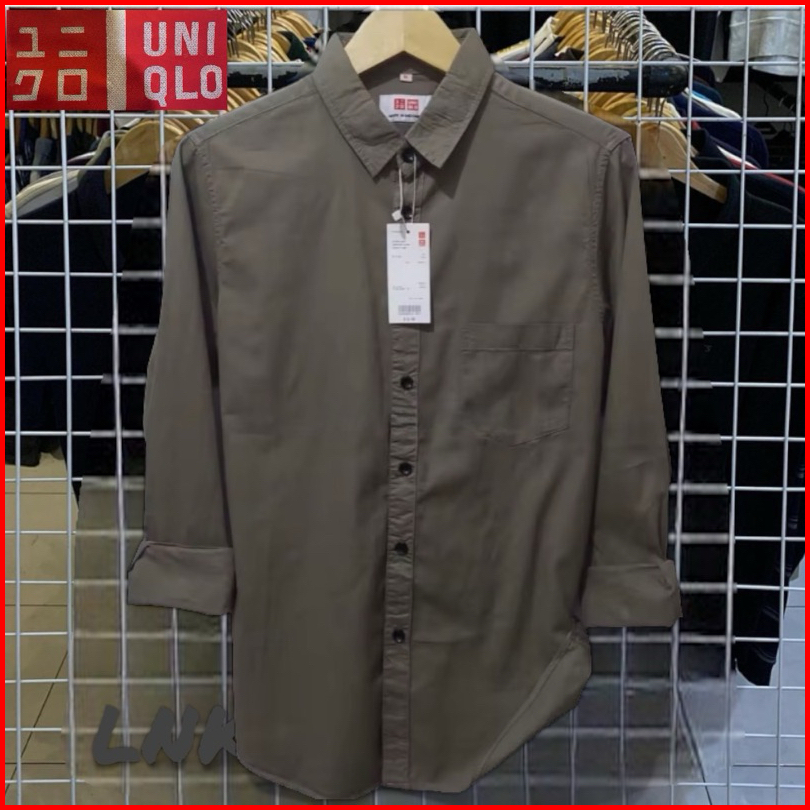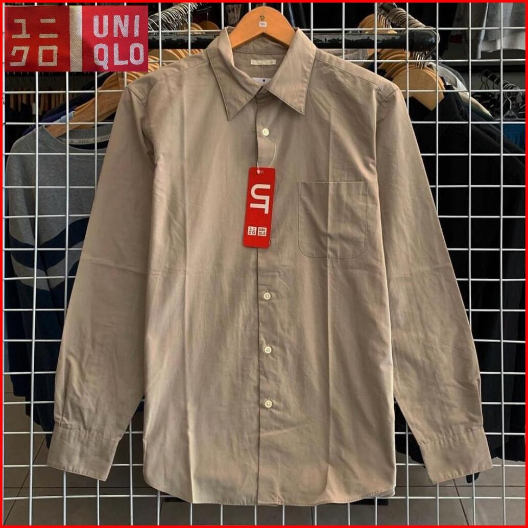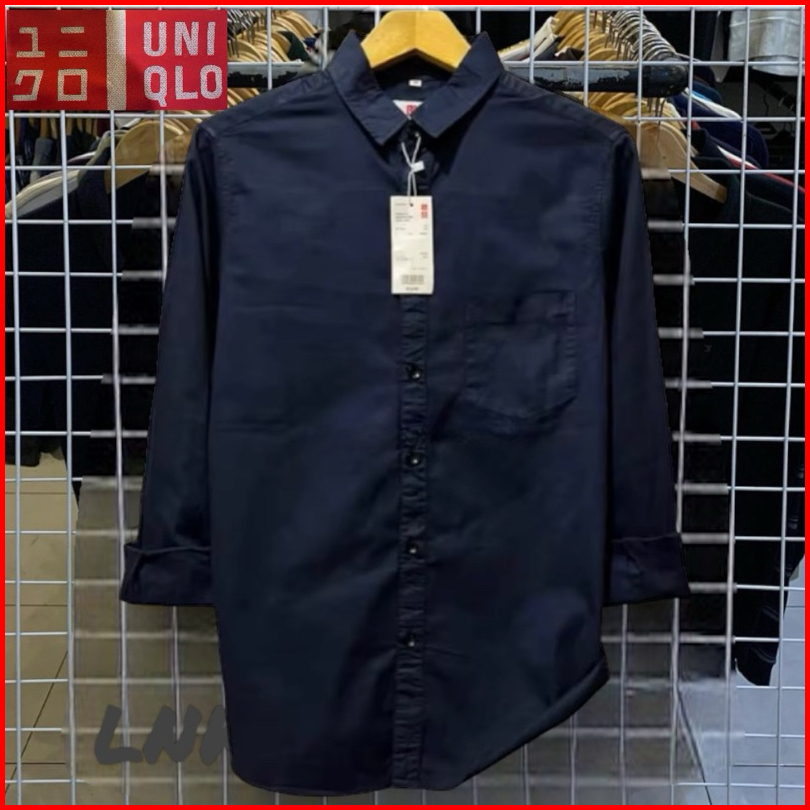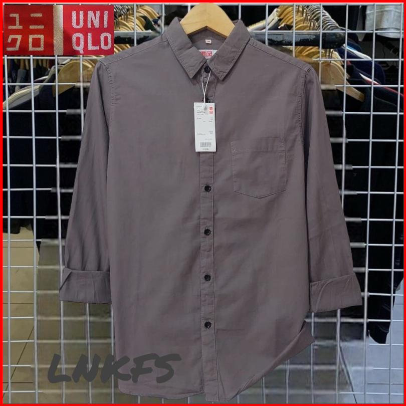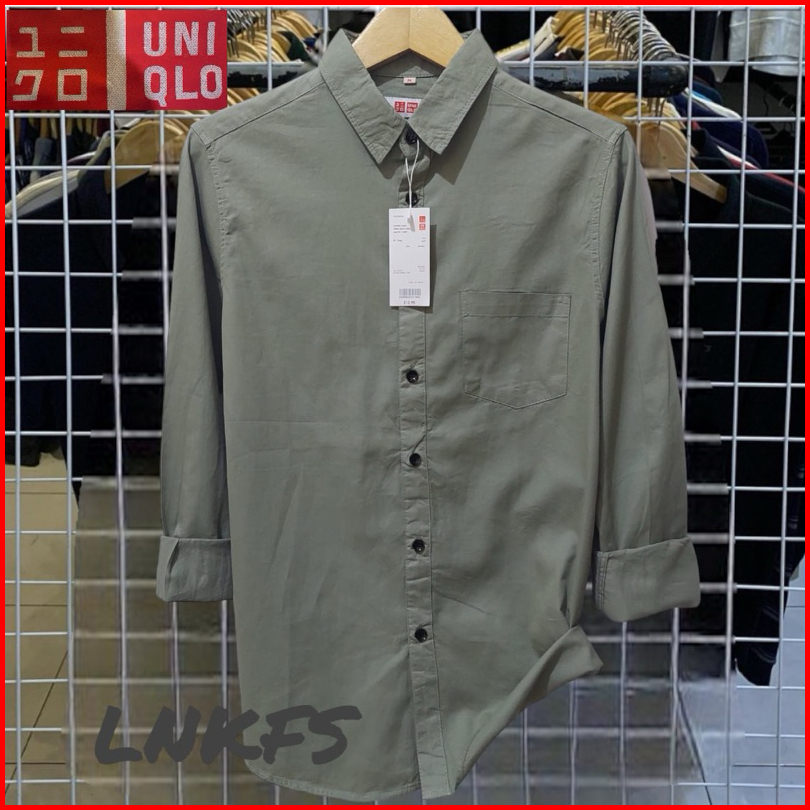 Kemeja Polos Pria Lengan Panjang Kemeja Putih Casual Uniqlo Kemeja Kerja Cowok Model Kerah