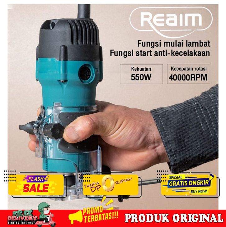 Reaim Wood Trimmer 550W 1/4" 6 MM Mesin Profil Router Trimmer Kayu - Reaim XBJ001