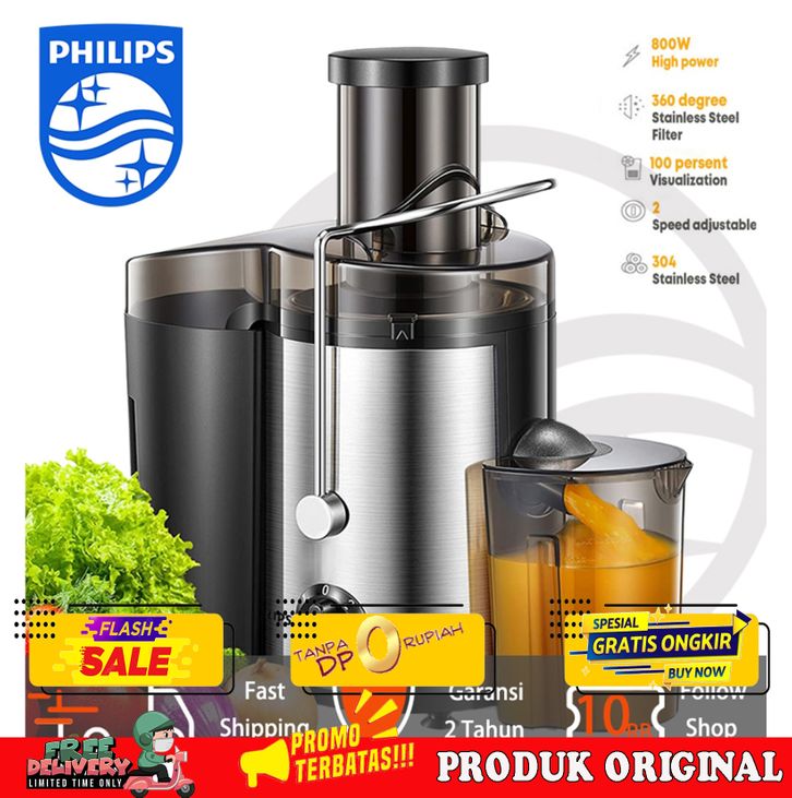 Juicer Philips Tanpa Ampas Blender Jus Buah Low Watt 800w Slow Juicer Portable Original 100%