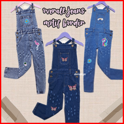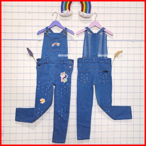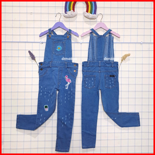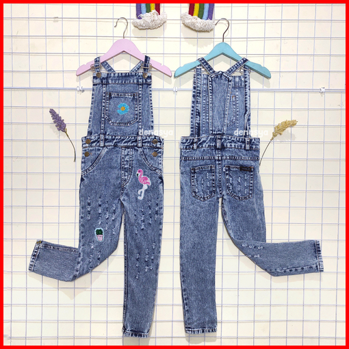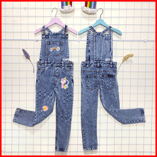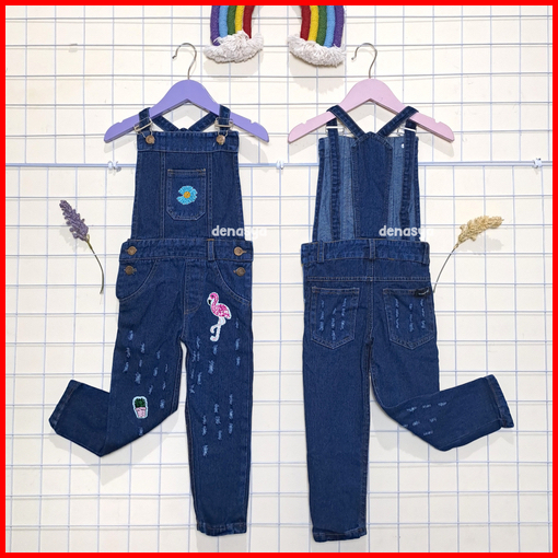 Jumpsuit Jeans Anak Perempuan Overall Anak Panjang Snow Wash Overall Anak Motif Bordir