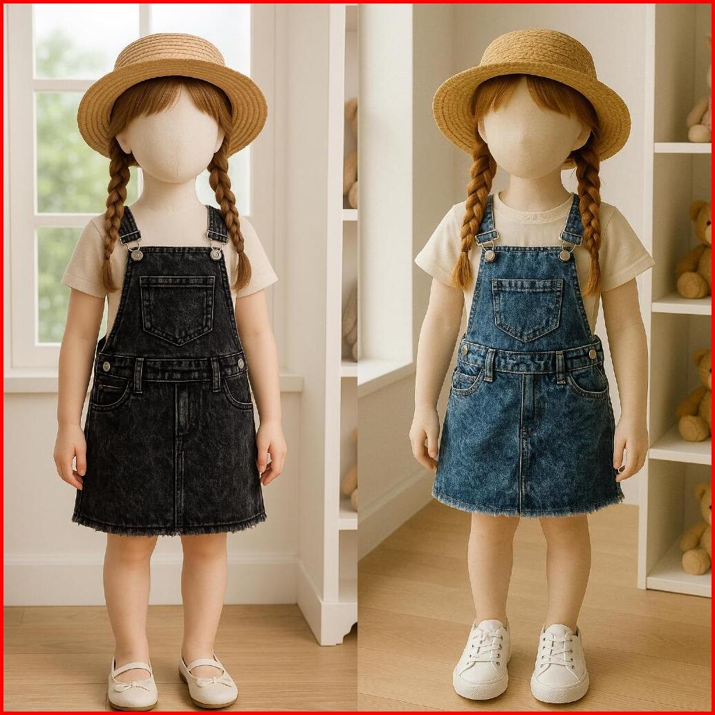 Overall Rok Pendek Jeans Rawis Anak Perempuan Usia 2-9tahun Overall Kodok Jeans Denim