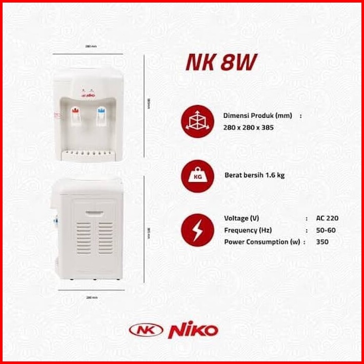 Dispenser Galon Air Niko 8w 2 Kran Panas Normal