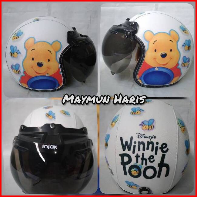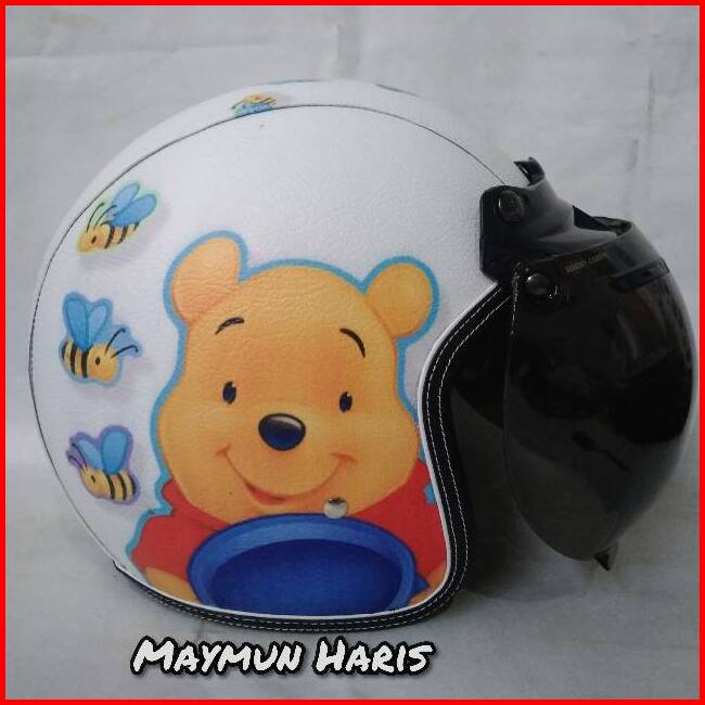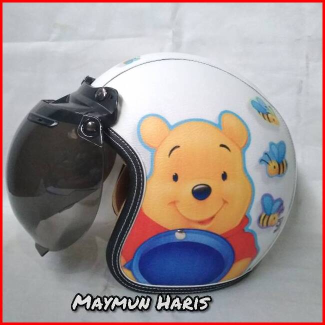 Helm Bogo Retro Dewasa Motif Winnie The Pooh Kumbang Biru