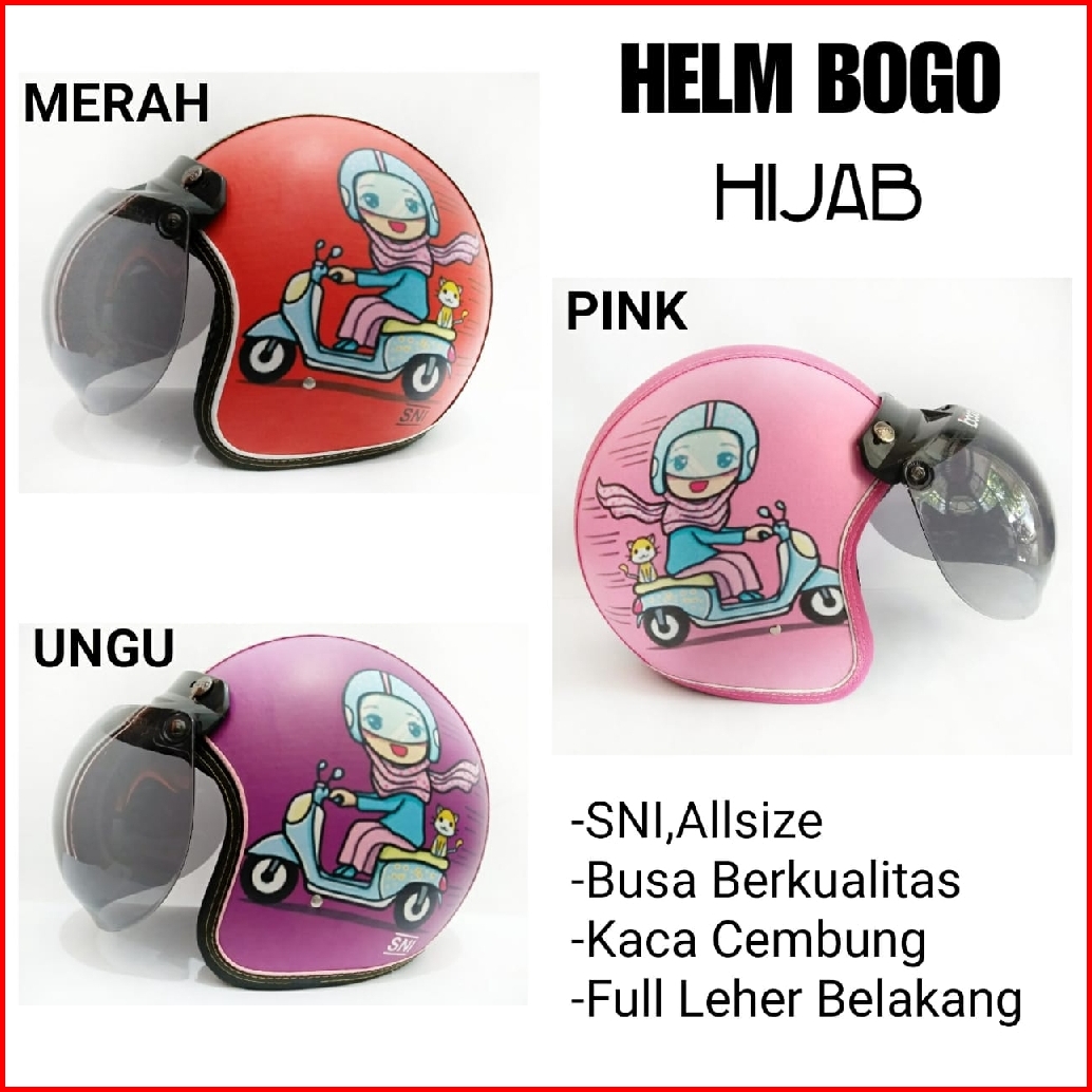 Helm Bogo Hijab Pink Helm Bogo Hijab Merah Helm Bogo Hijab Ungu Helm Bogo Fullprint Hijab Syari