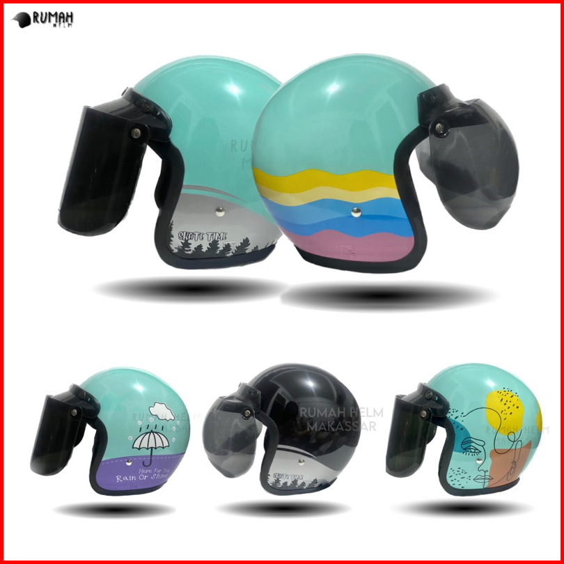 Helm Retro Bogo Motif Boho Aestetik Pastel Murah