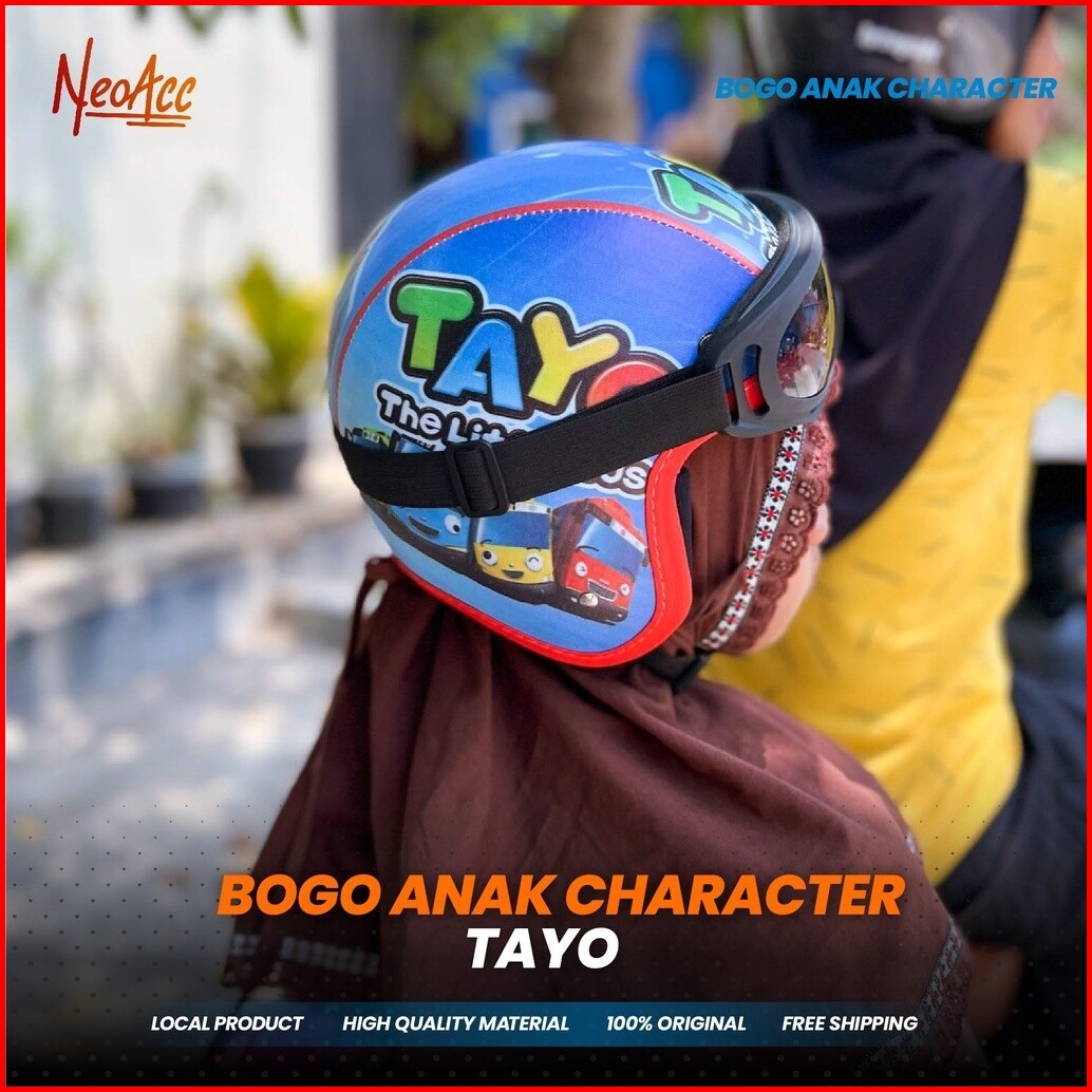 Helm Bogo Anak Kacamata Laki Laki Perempuan 2 - 7 Tahun Kulit Sintetis Premium Motif Printing Karakter Lucu Pororo