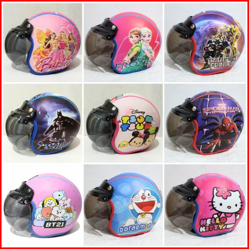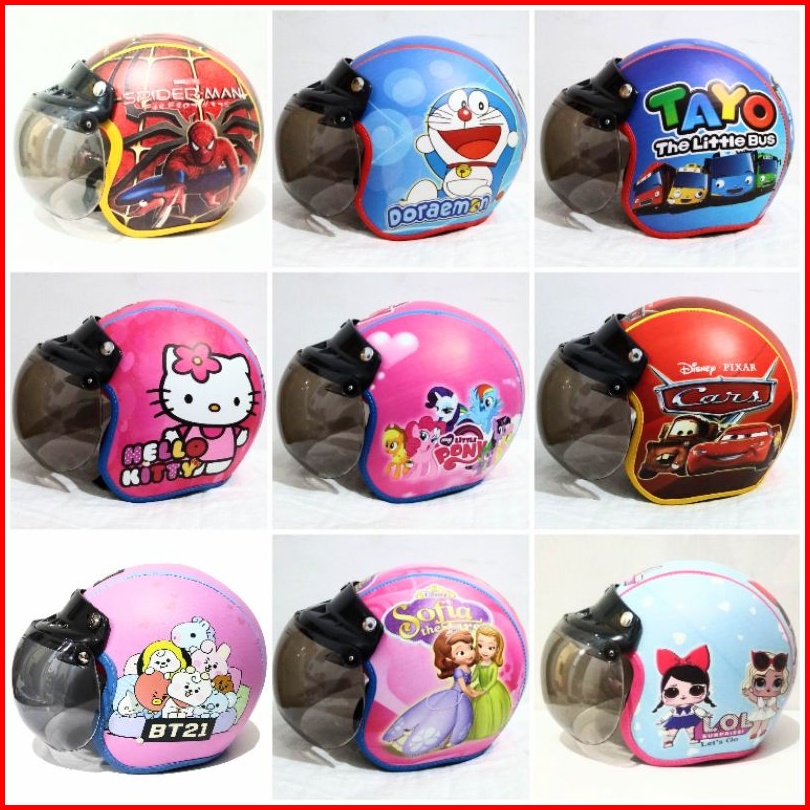 Tayo, Hello kitty, Lol biru, Pony, Batman, Sofia, Princess, Cars, Doraemon, Spiderman biru, Spiderman merah, Transformer, Frosen, BT21, Tsum tsum