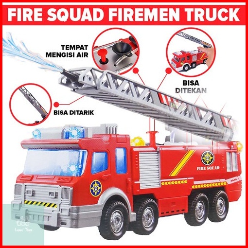 Mainan Edukasi Anak - Mobil Pemadam Kebakaran Bisa Semprot Air Fire Squad Firemen Truck Sy732