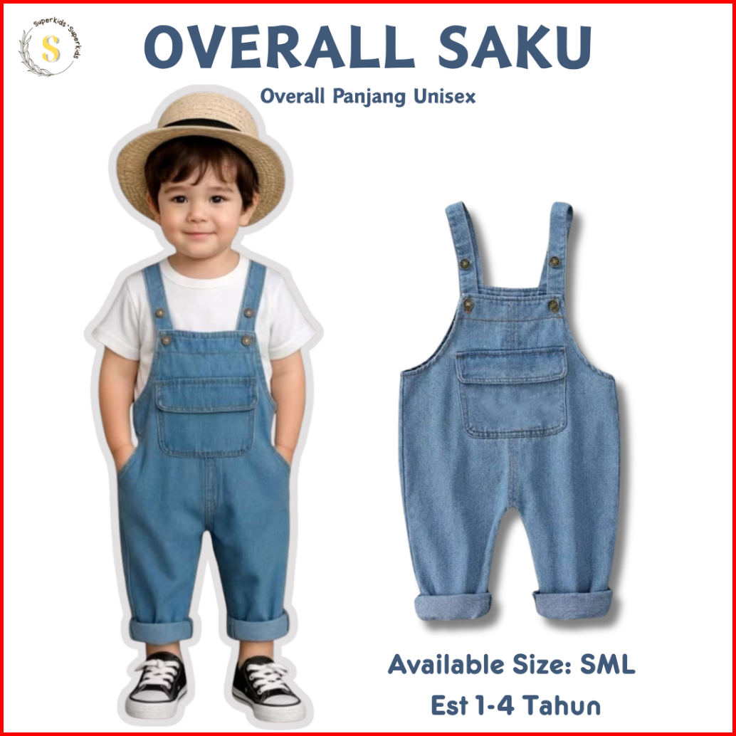 Kidssuper Overall Saku - Overall Jeans Anak Overall Panjang Anak 1-4 Tahun Baju Kodok Anak Laki-laki Dan Perempuan Overa
