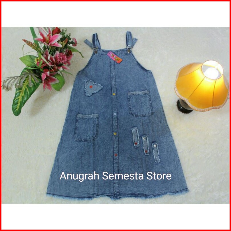 Baju Kodok Atau Over All Snow Anak-anak Perempuan Bahan Shoft Jeans Ukuran M L Xl Umur 5-10 Tahun