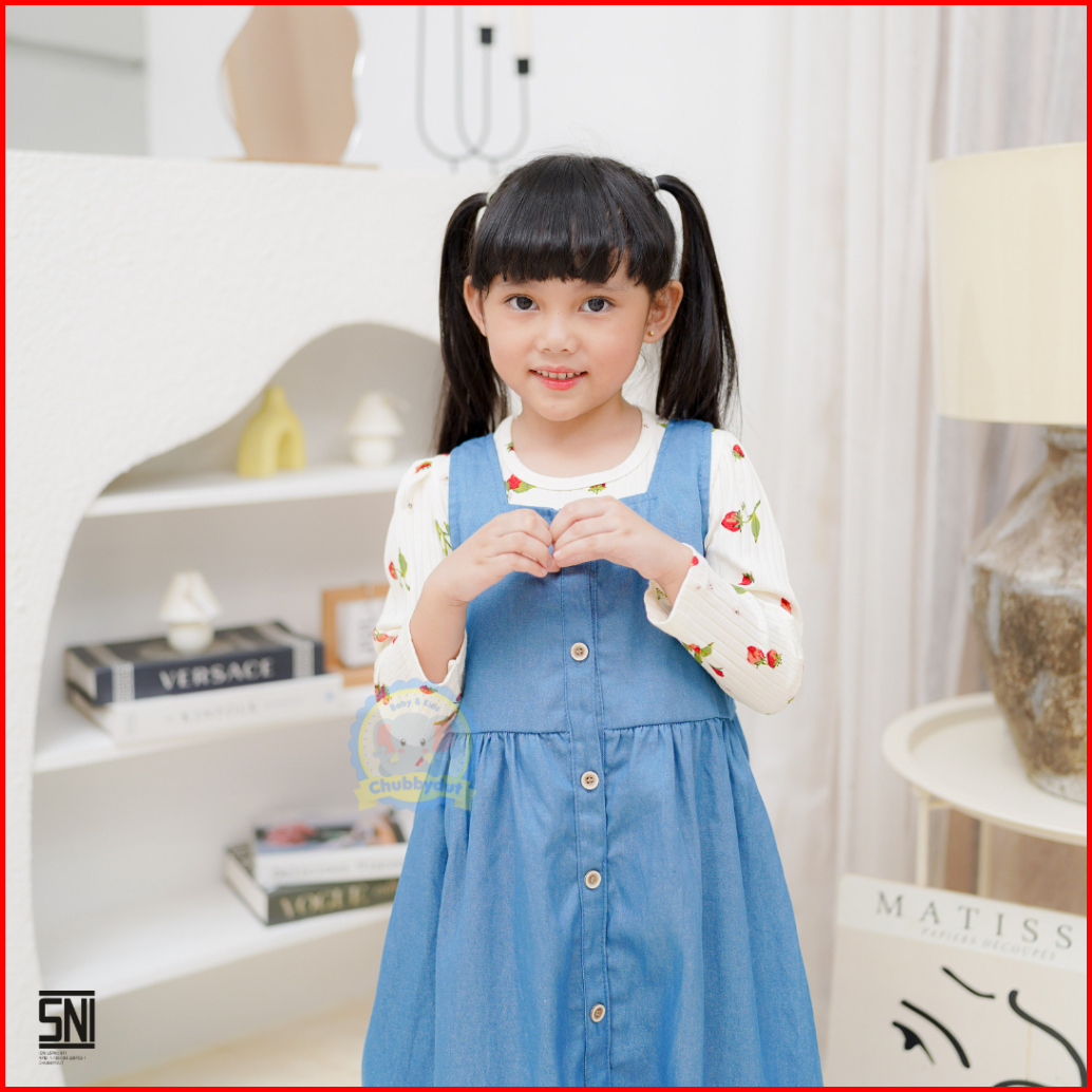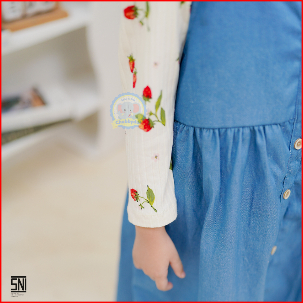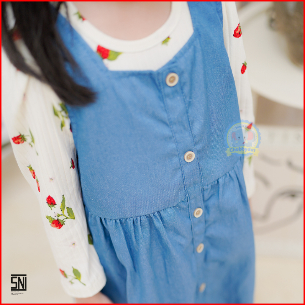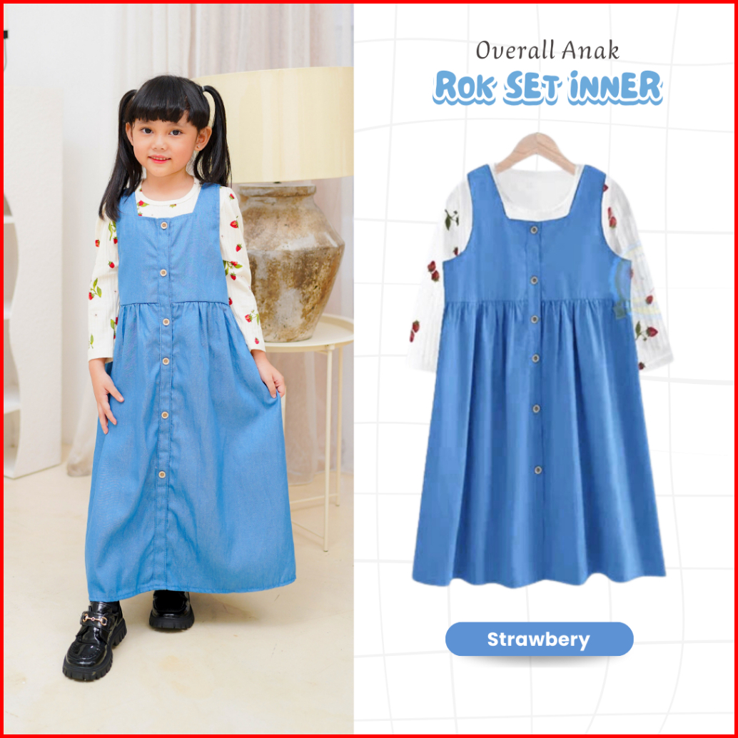 Qaira Overall Anak Perempuan Jeans Rok Set Inner Knit Motif Strawberry