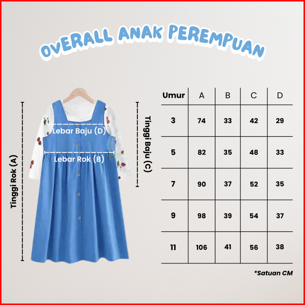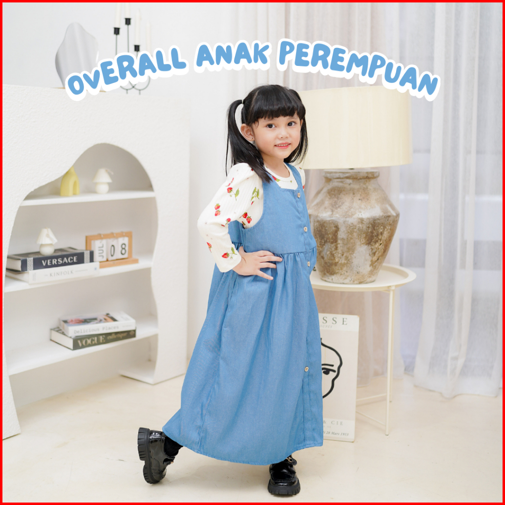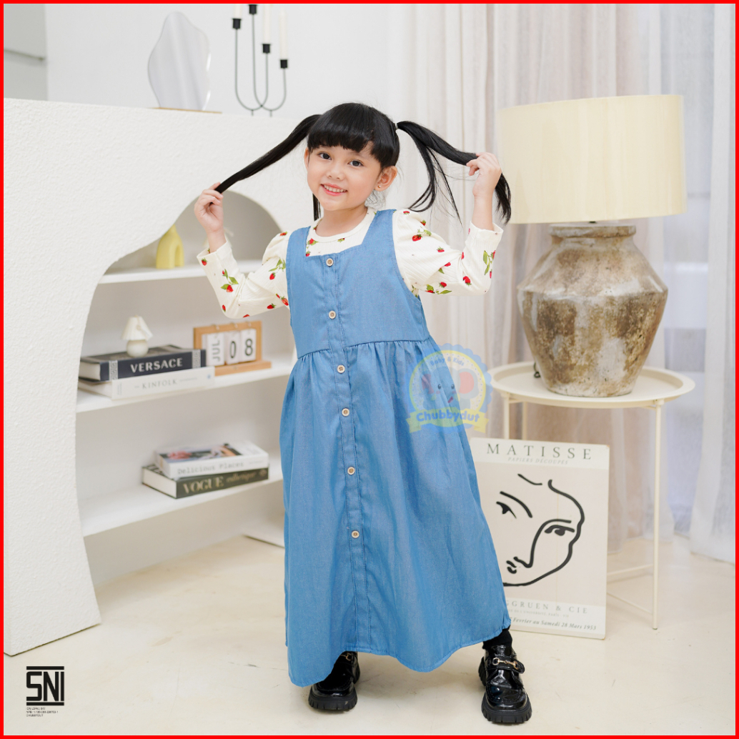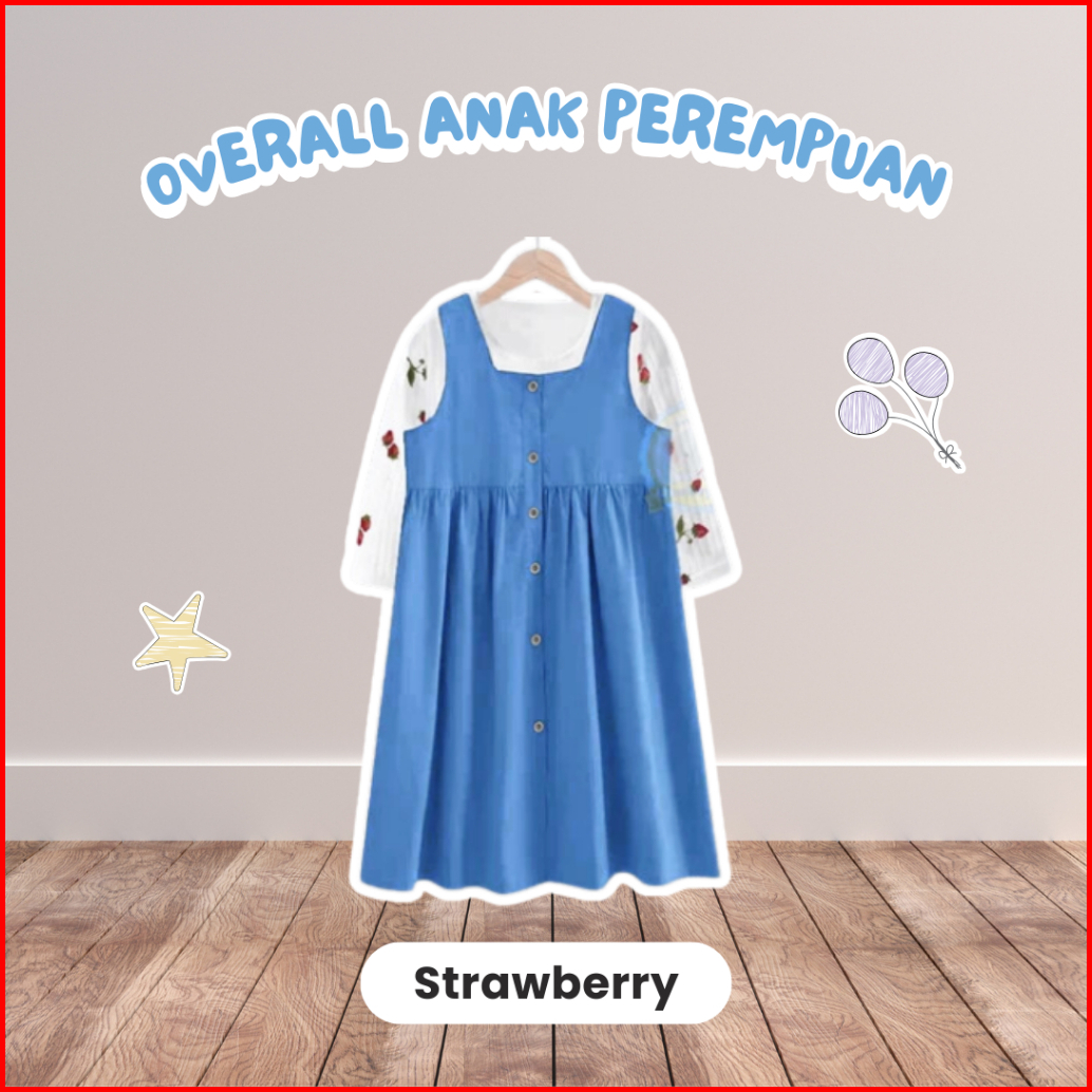 Qaira Overall Anak Perempuan Jeans Rok Set Inner Knit Motif Strawberry