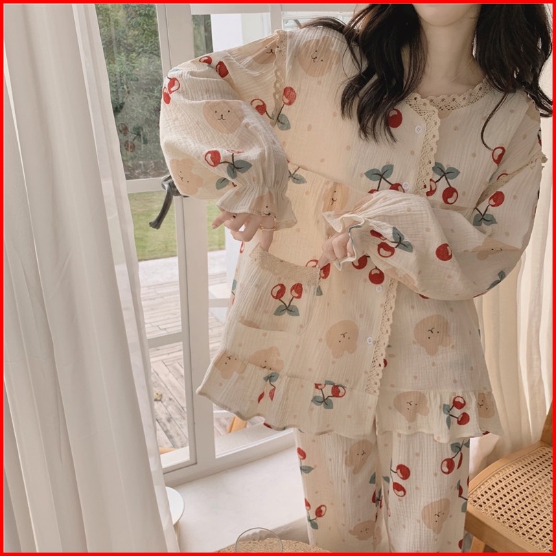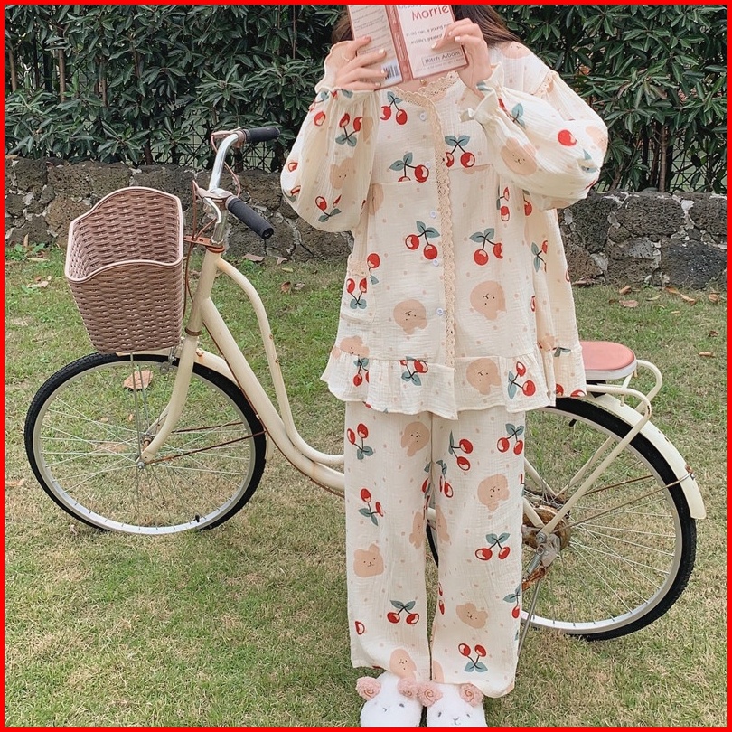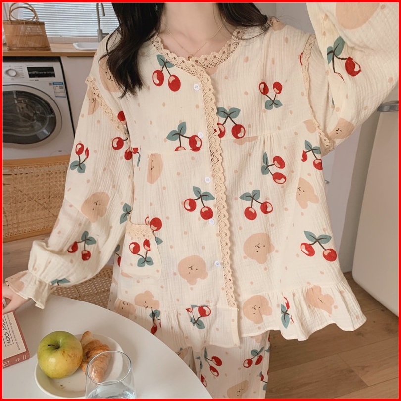 Cherry Teddy Long Pajamas - Dream Tales Sleepwear - Piyama Wanita Katun Korea