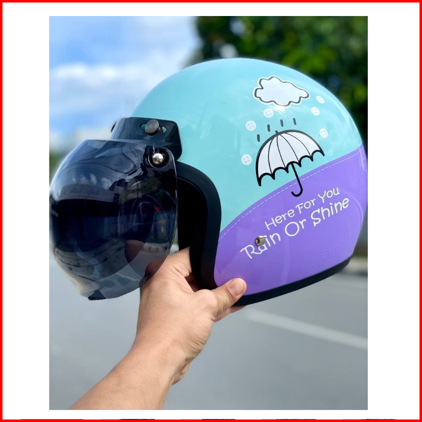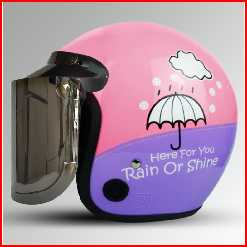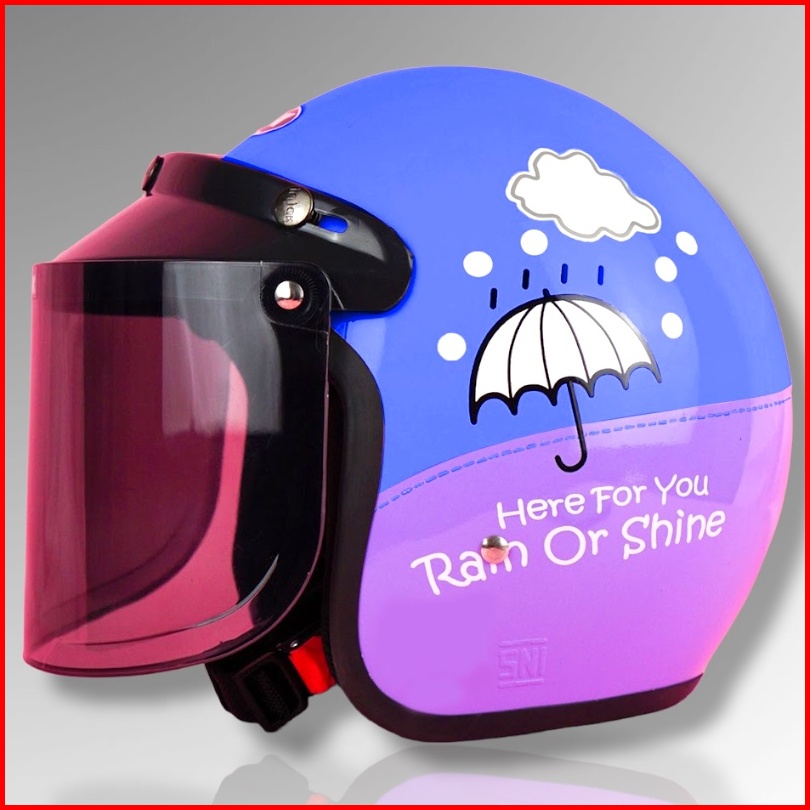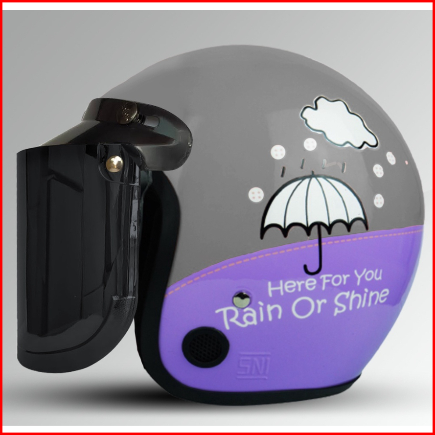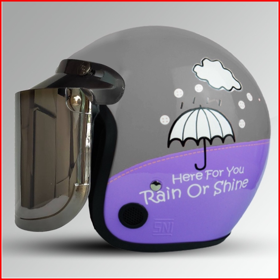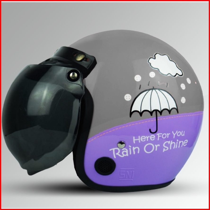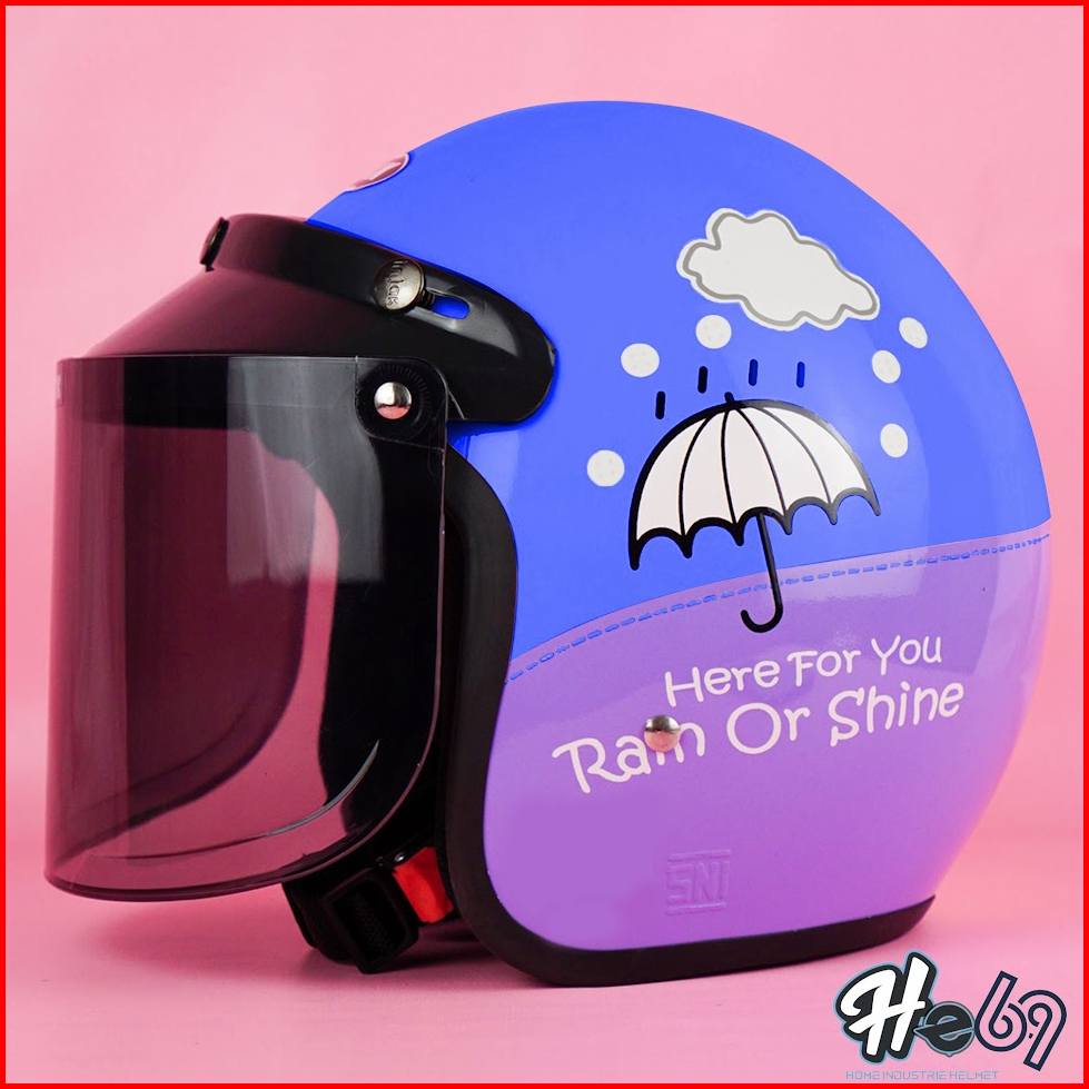 Helm Motor Bogo Retro Motif Payung Terkini Full Leher Kualitas Premium Kaca Cembung Kaca Datar