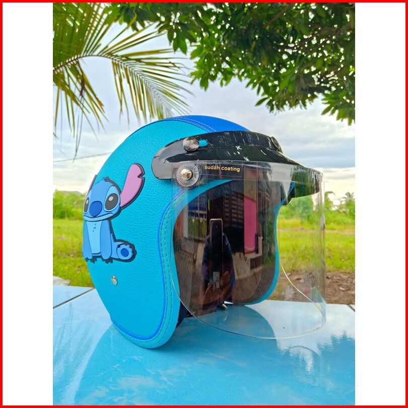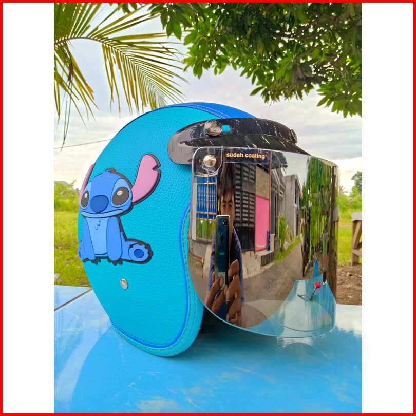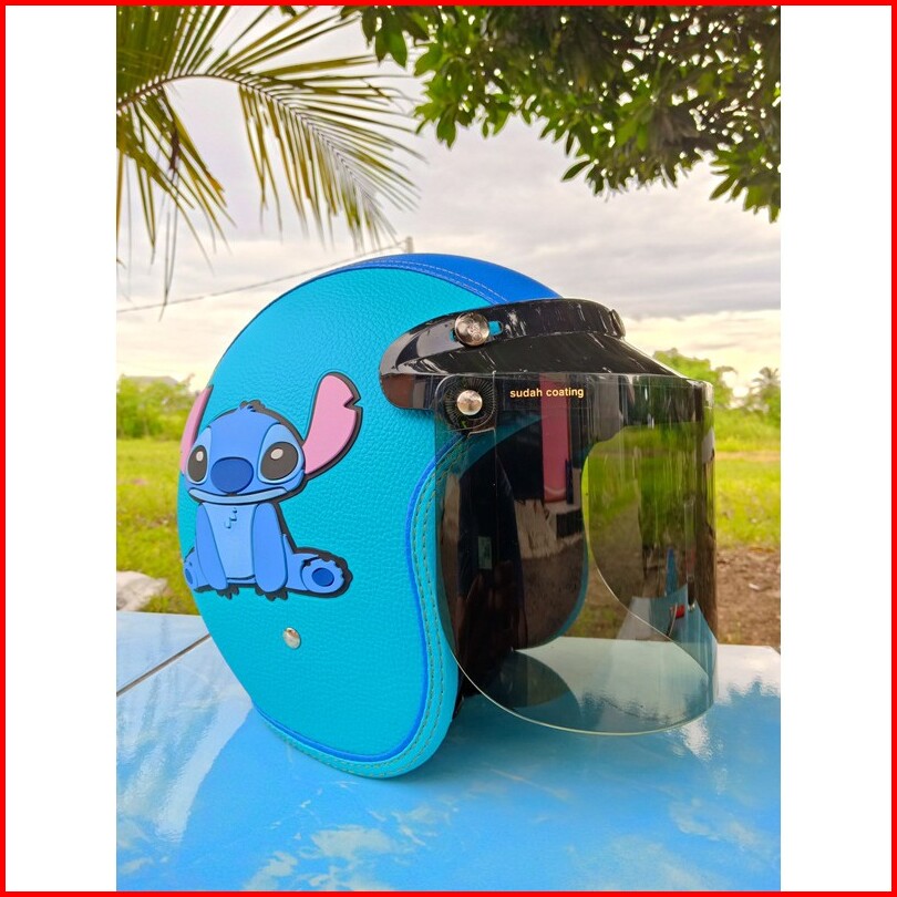 Helm Bogo Dewasa Karakter Stitch Pakai Kaca Datar