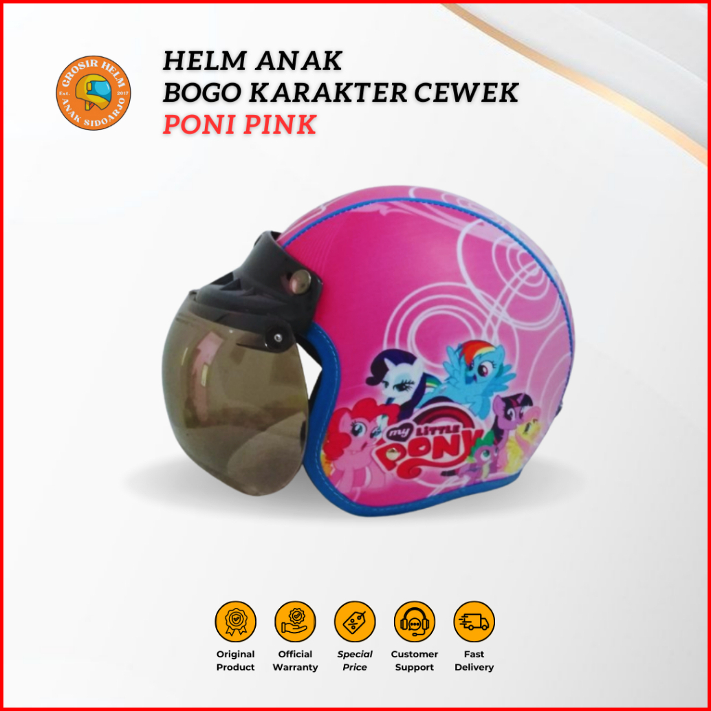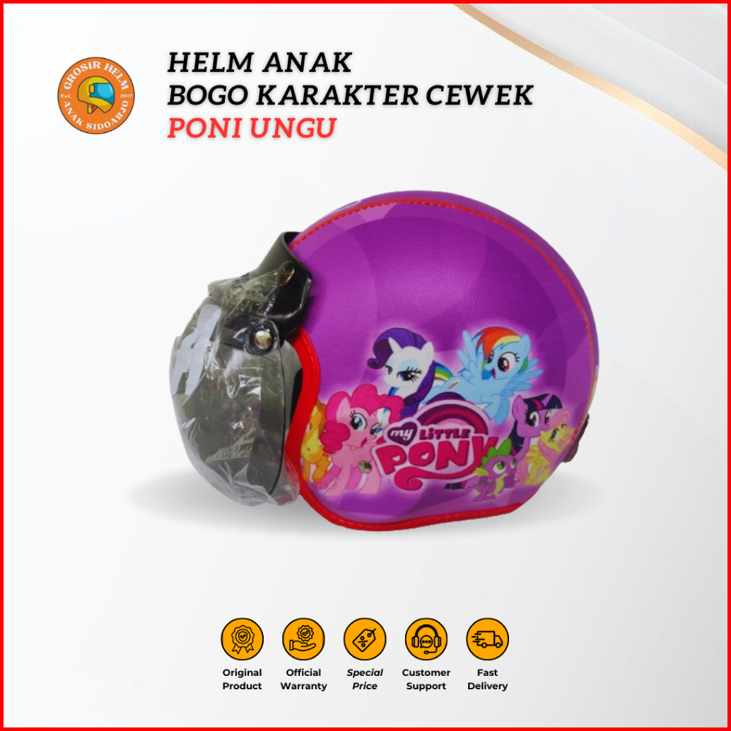 Helm Bogo Anak Retro Usia 2-6 Tahun Motif Poni - Helm Bogo Anak Little Pony - Kaca Cembung