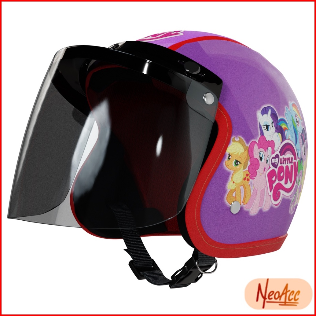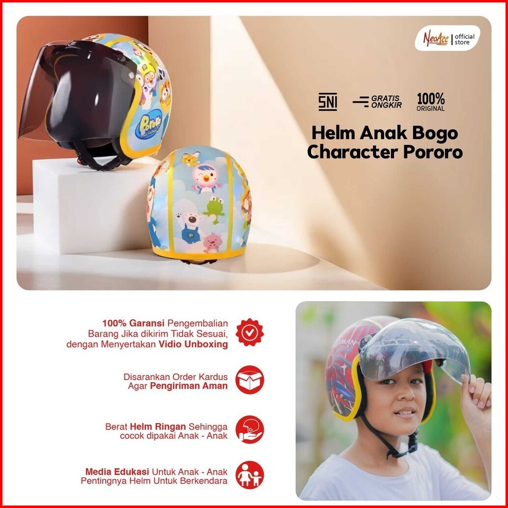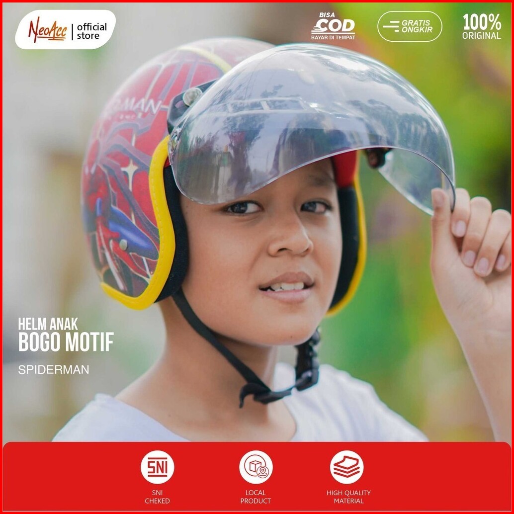 Helm Bogo Anak Laki Laki Perempuan 2 - 7 Tahun Kulit Sintetis Premium Kaca Flat Datar Terang Motif Printing Karakter Luc