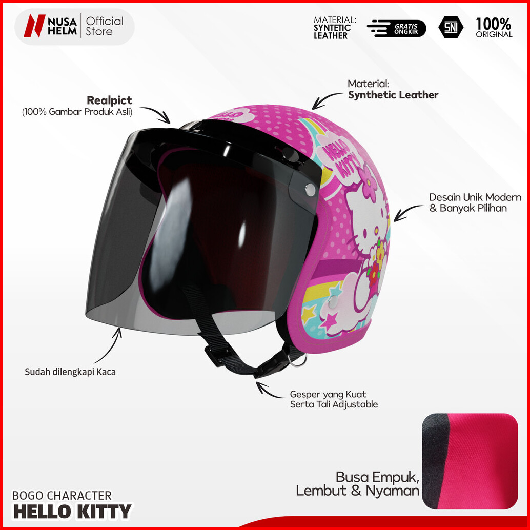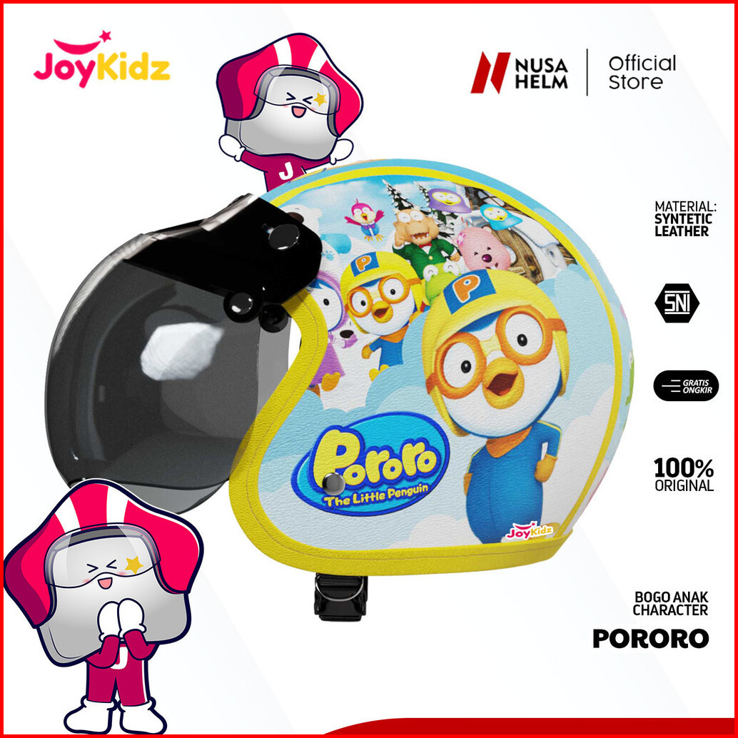 Helm Bogo Retro Anak Untuk Usia 2-7 Tahun Motif Pororo - Biru Merah