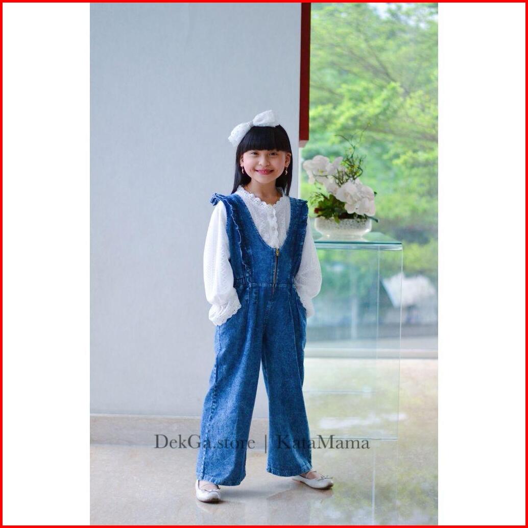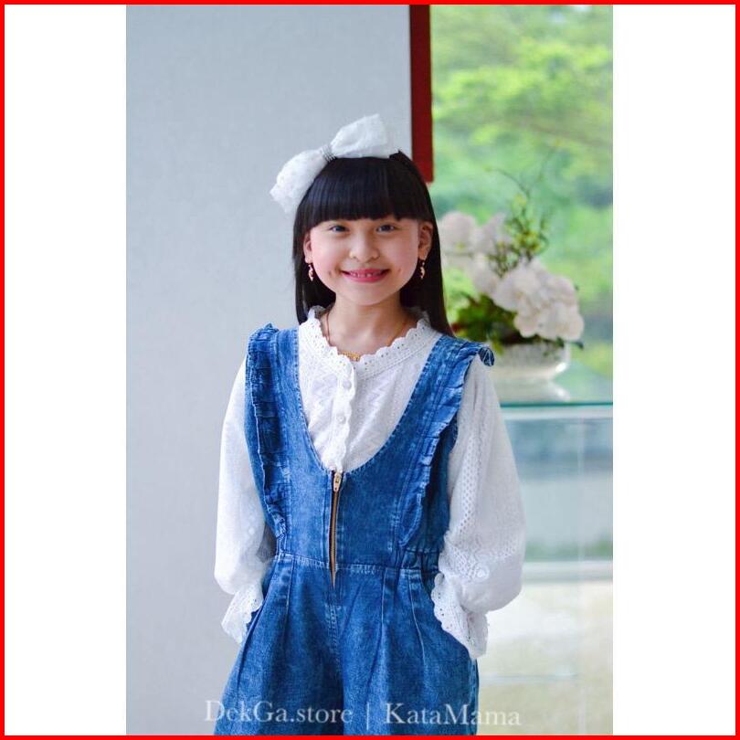 Overall Viona Jeans Anak Jumpsuit Jeans Anak Plus Kemeja Brukat Anak Perempuan 2-14tahun