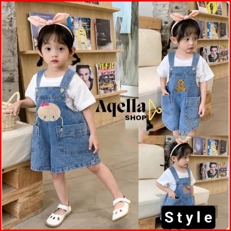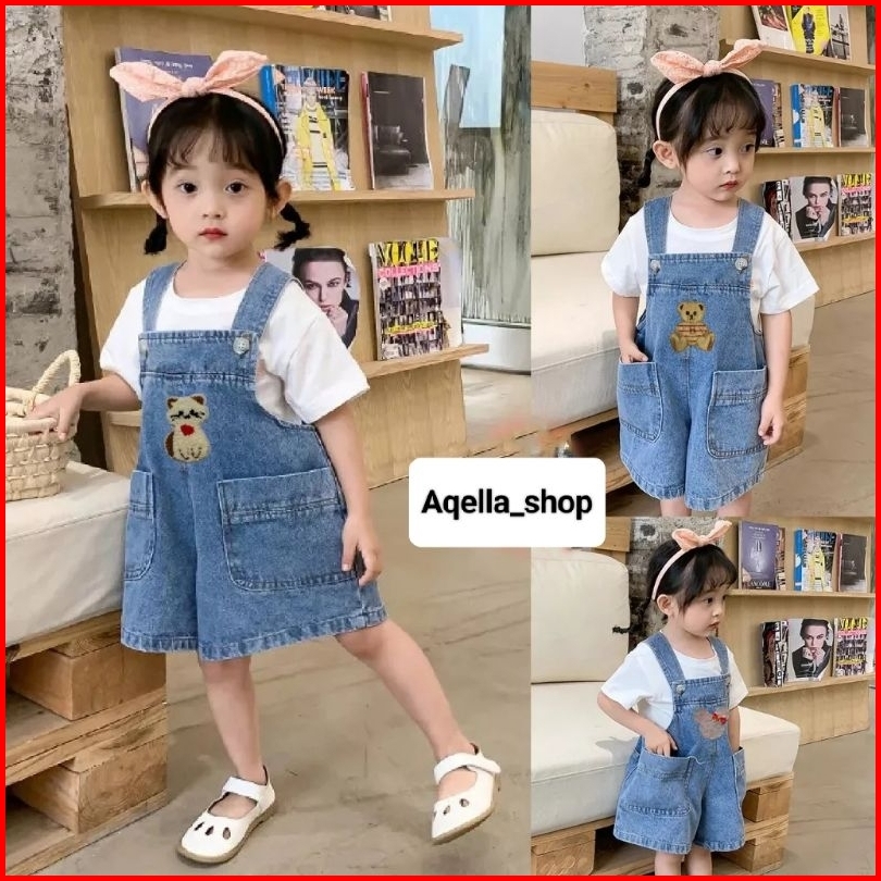 Overall 3d Pendek Jeans Karakter Boneka Anak Usia 1-6 Tahun